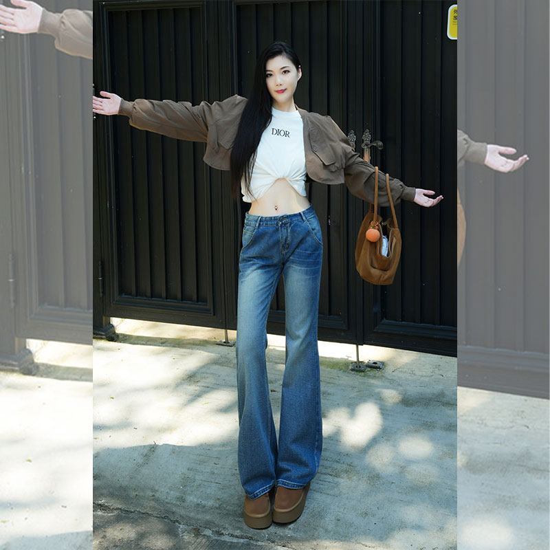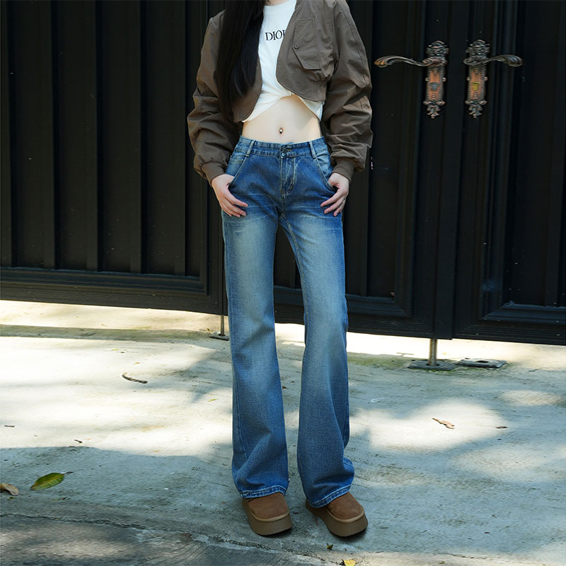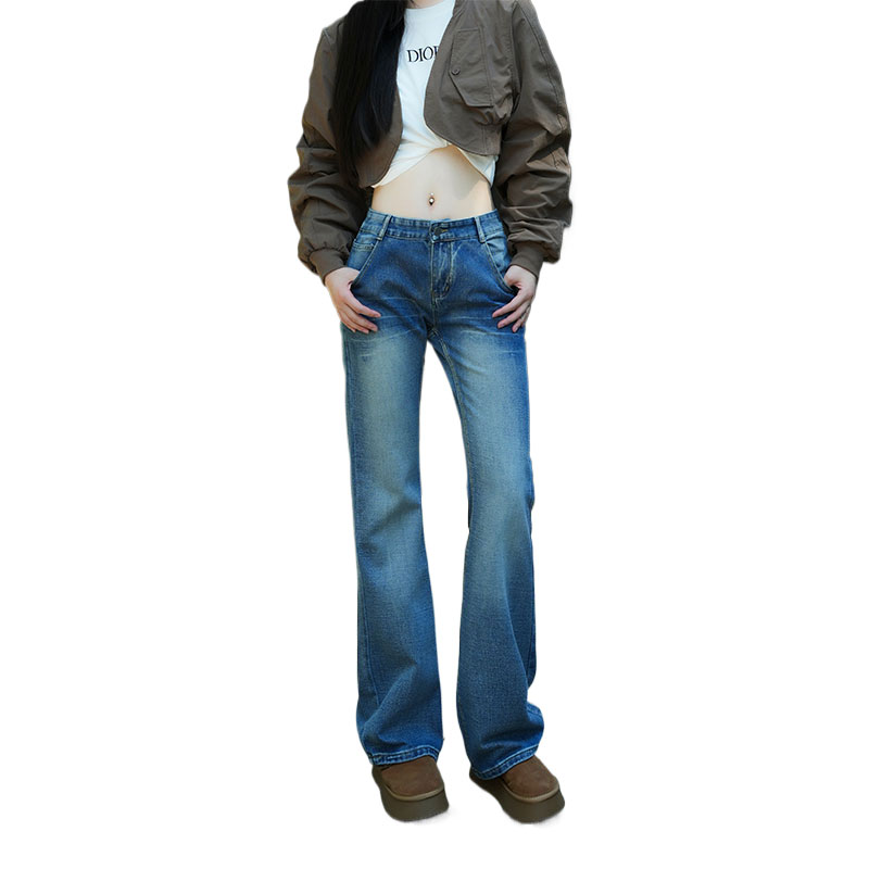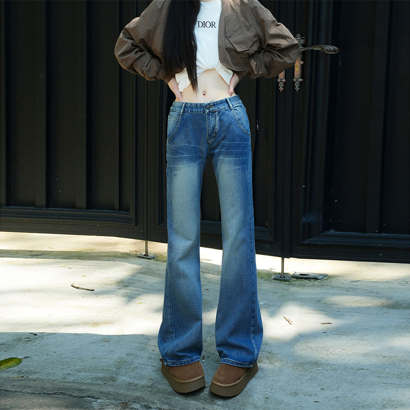 FA49252# -美式微喇牛仔裤女水洗蓝色辣妹显瘦垂感百搭直筒拖地阔腿裤 服裝批發女裝批發服飾貨源