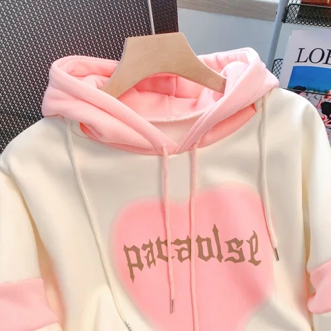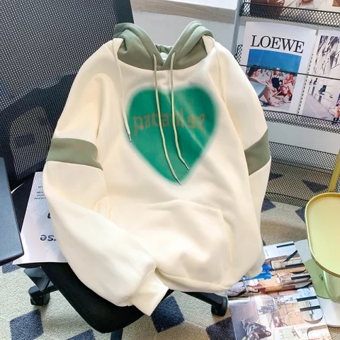 FA49448# 美式潮牌oversize爱心撞色连帽卫衣女秋冬季高级感重磅加绒厚外套 服裝批發女裝批發服飾貨源