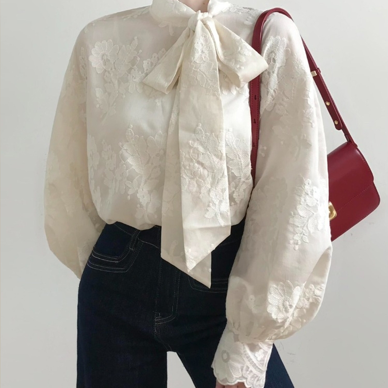 FA49625# 秋装法式独特精致小上衣气质轻奢高级感绝美蕾丝花边系带白色衬衫