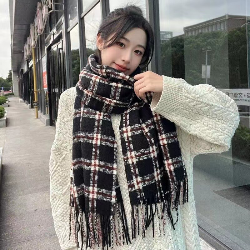 FA49634# 学院风小香风格子流苏围巾女秋冬仿羊绒韩版披肩保暖情侣围脖