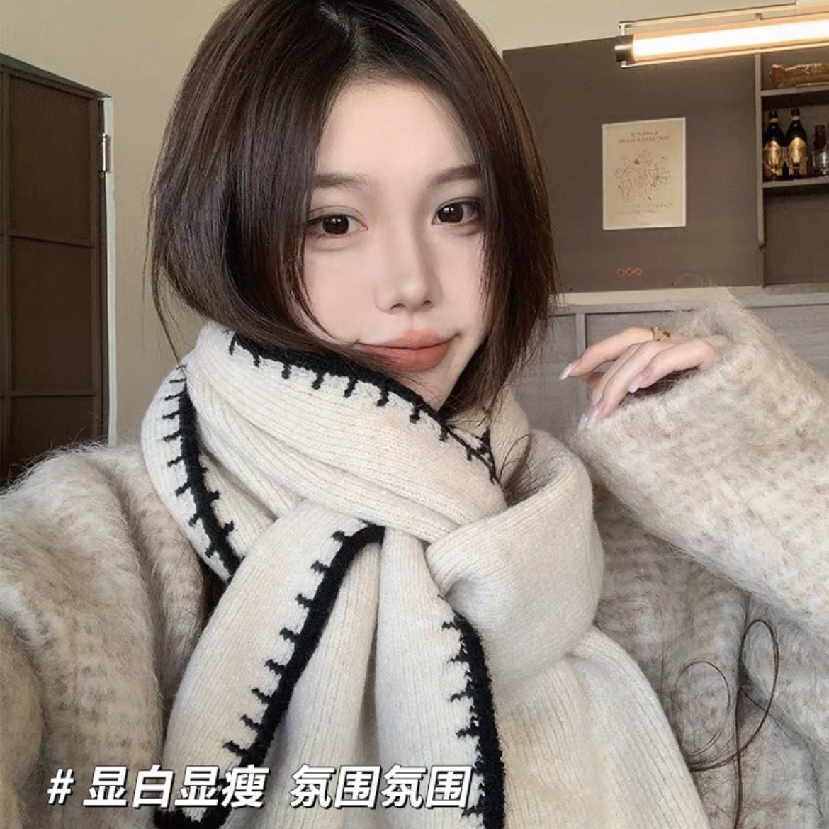 FA49637# 针织毛线围巾女冬季新款韩版围巾加厚学生情侣冬天百搭围脖