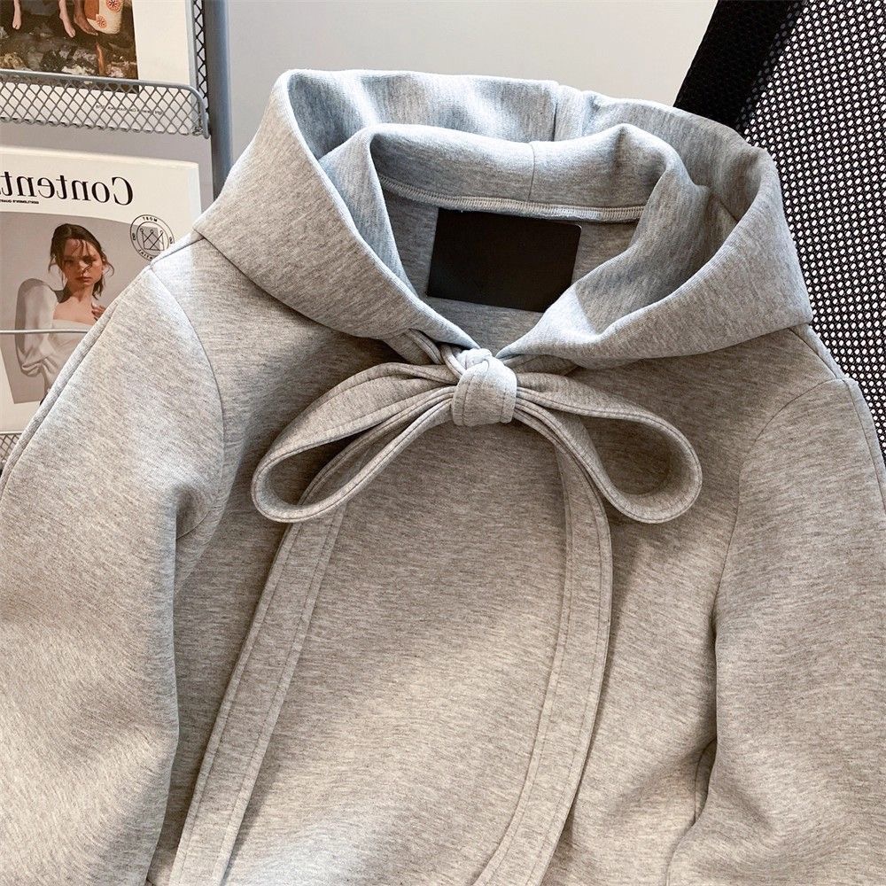 FA49698# 蝴蝶结连帽花苞卫衣外套男女早春穿搭设计感特大码300斤通勤上衣
