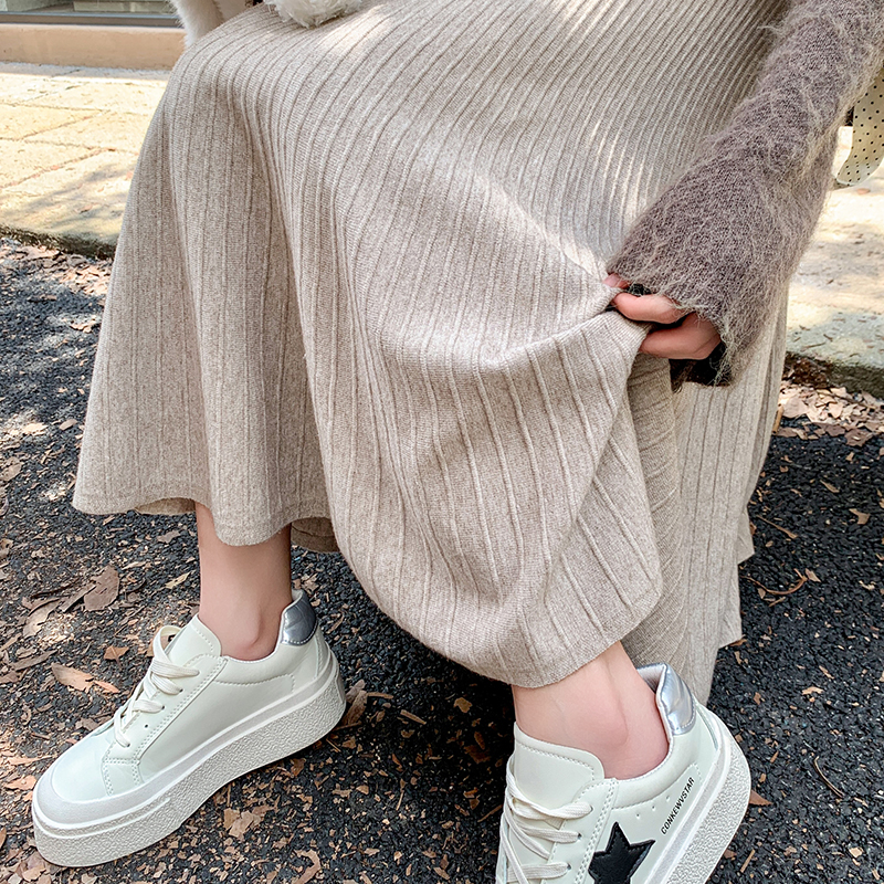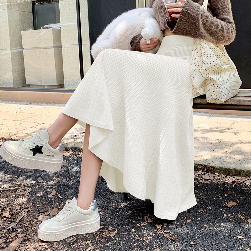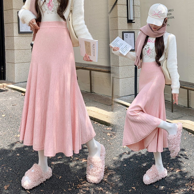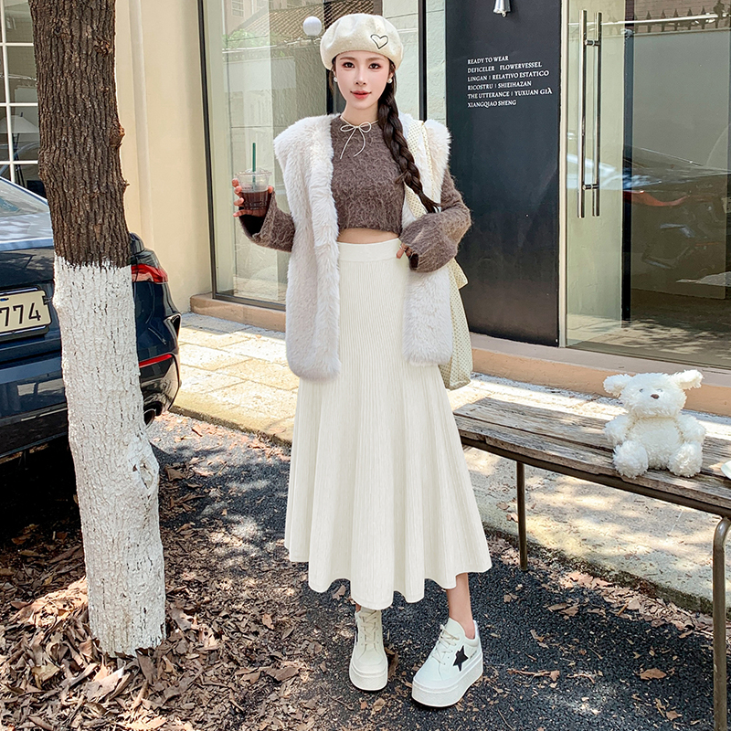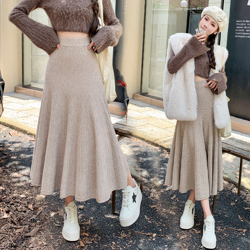 FA49710# 针织半身裙女秋冬季加厚毛线百褶裙小个子半裙a字伞裙