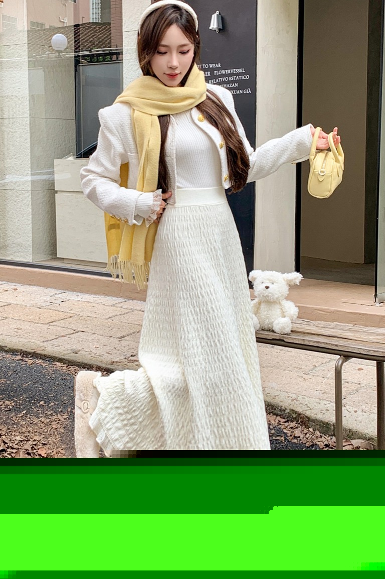 FA49712# 米白色褶皱针织半身裙秋冬新款高腰显瘦垂感休闲a字长裙