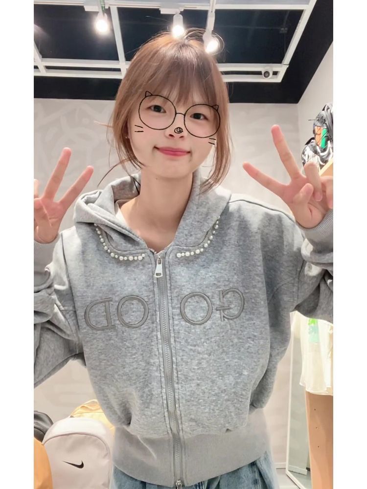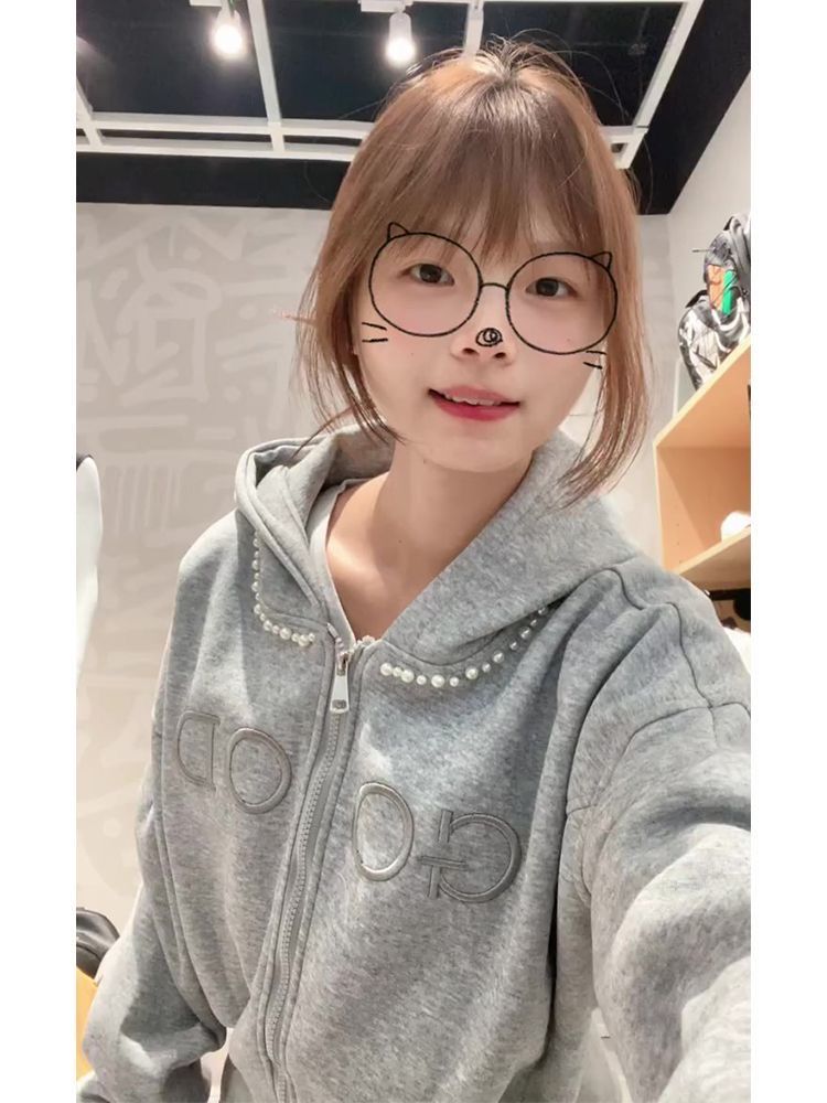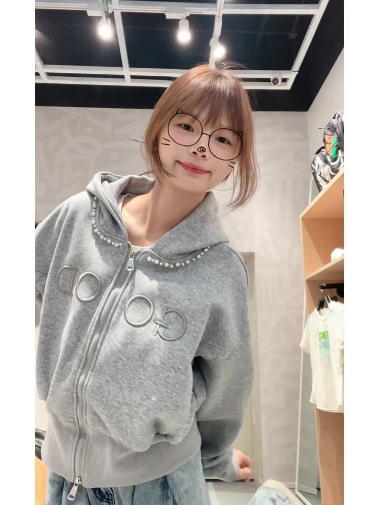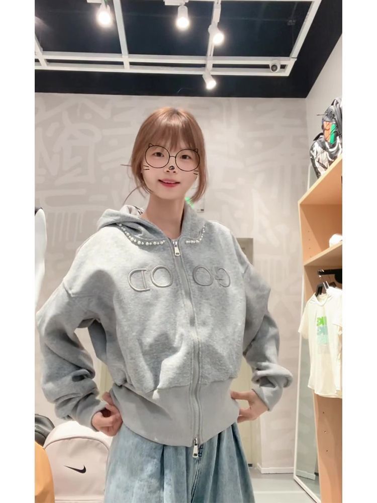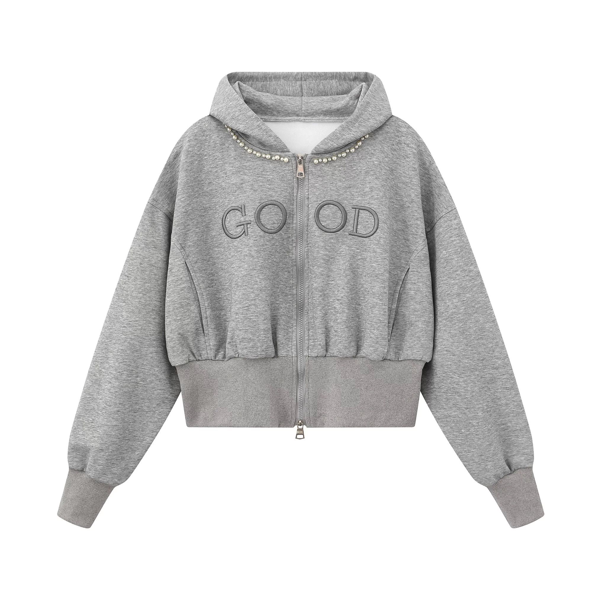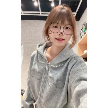 FA49716# 薄款原版做工刺绣+钉珠后包领纯棉华棉复合卫衣女