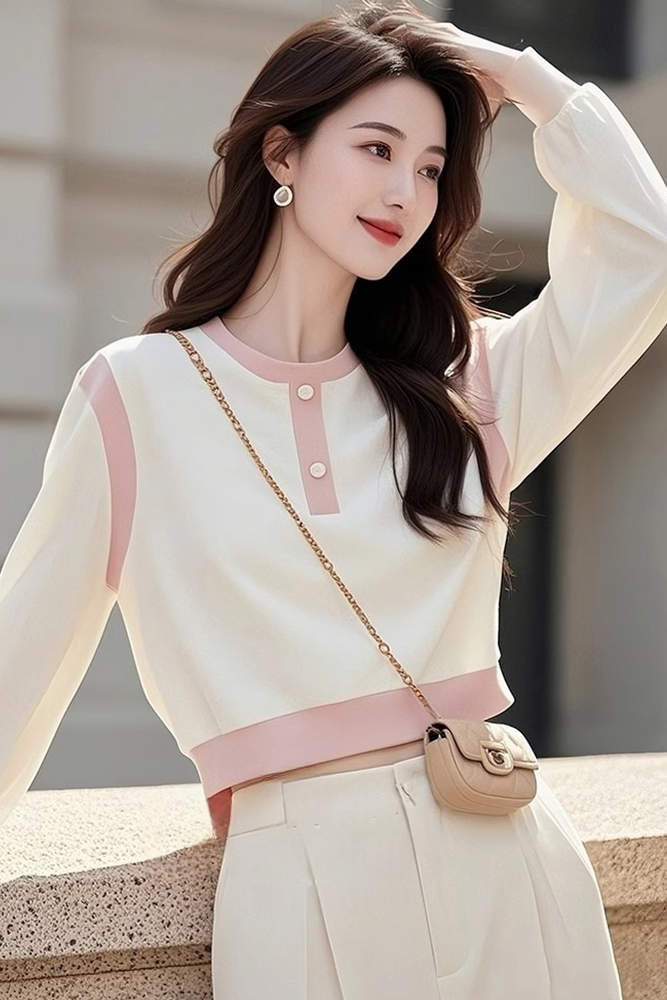 FA49725# 春秋独特慵懒风短款长袖卫衣女设计感超好看拼色通勤绝美长袖上衣