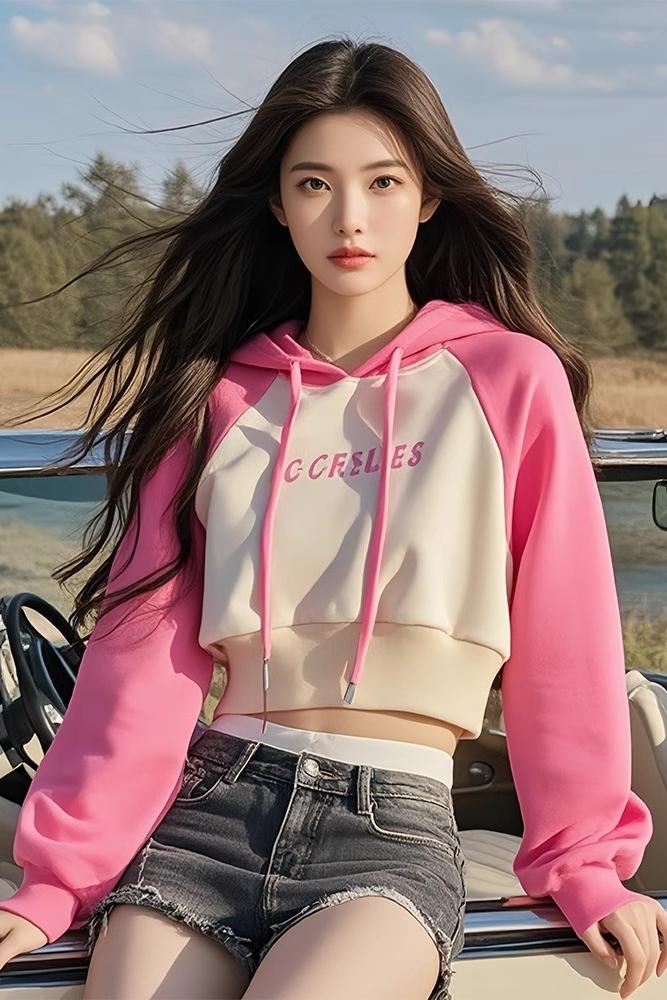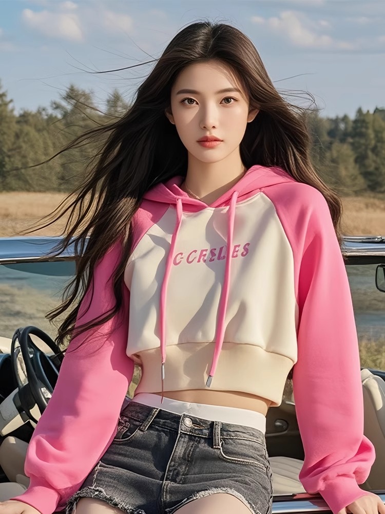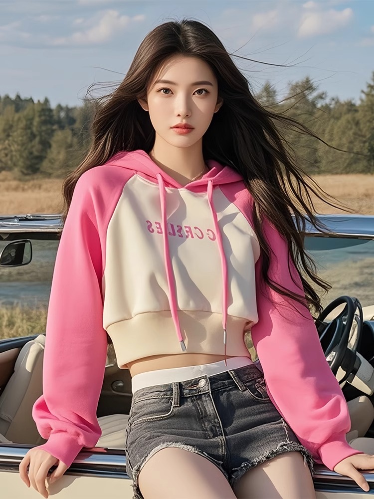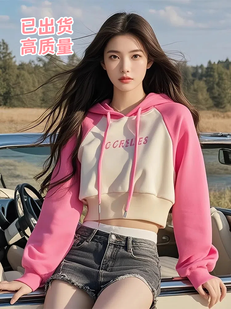 FA49729# 洋气独特别致卫衣连帽外套女春秋新款爆款时尚小个子短款上衣