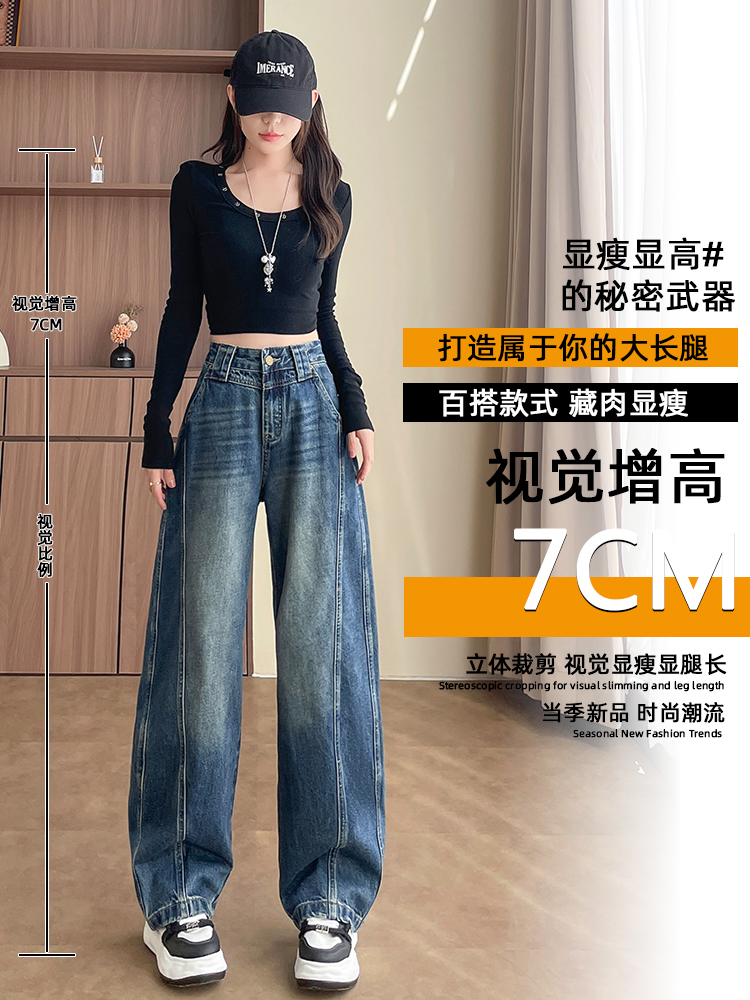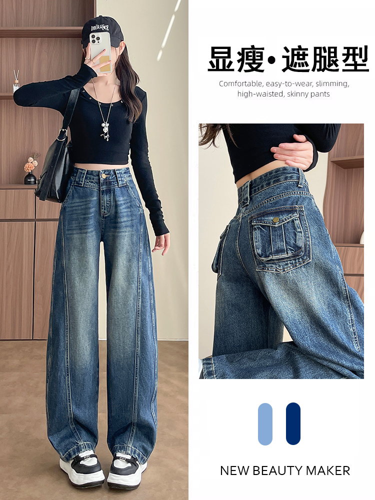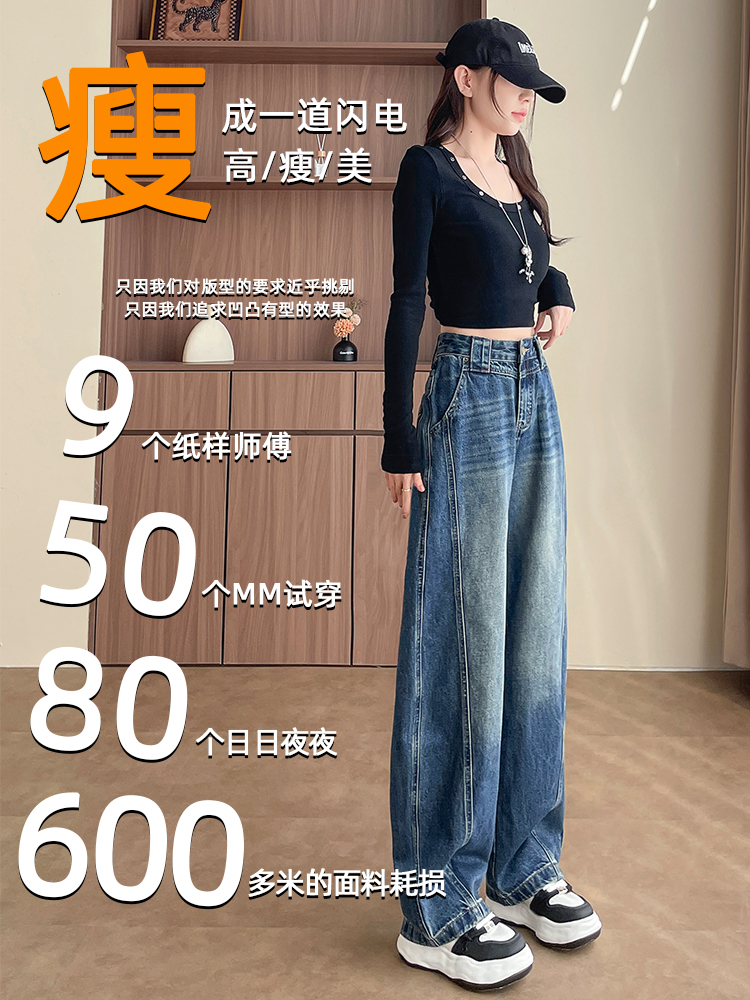 FA53615# 复古弯刀工装牛仔裤女春季新款宽松设计感阔腿镰刀香蕉裤