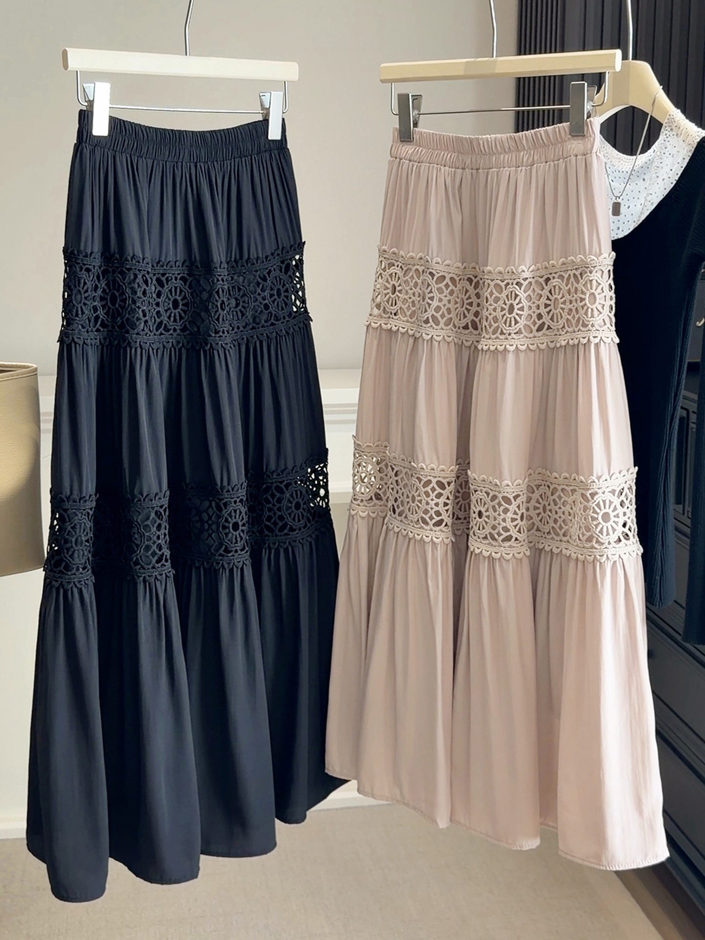 FA53647# 镂空钩花半身裙女高级感气质春夏季新款高腰a字中长蛋糕裙子