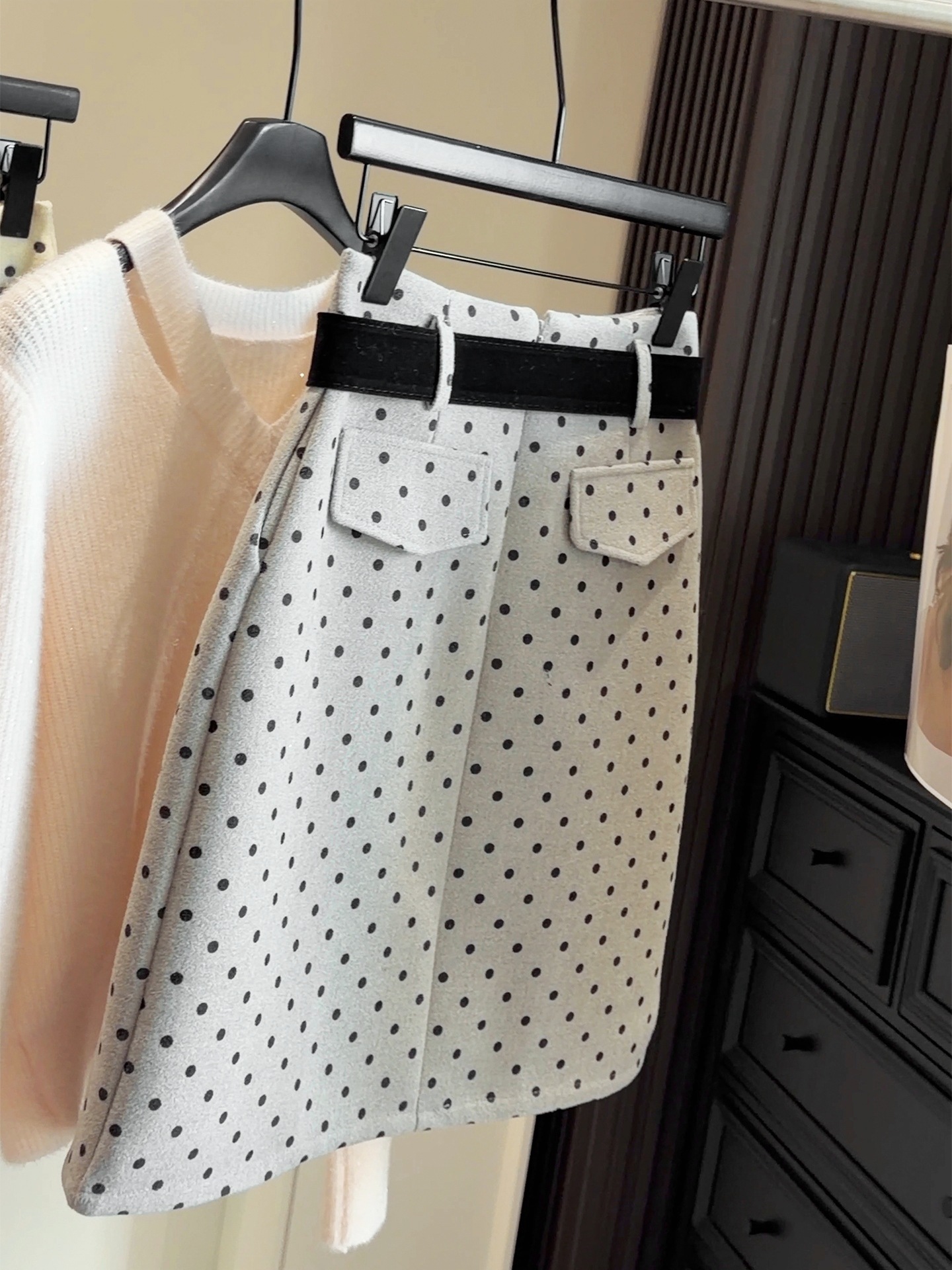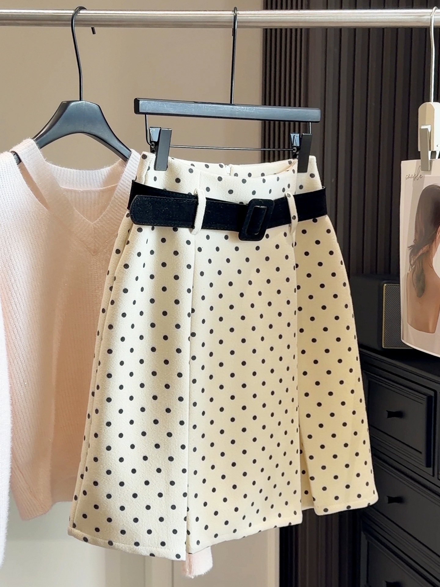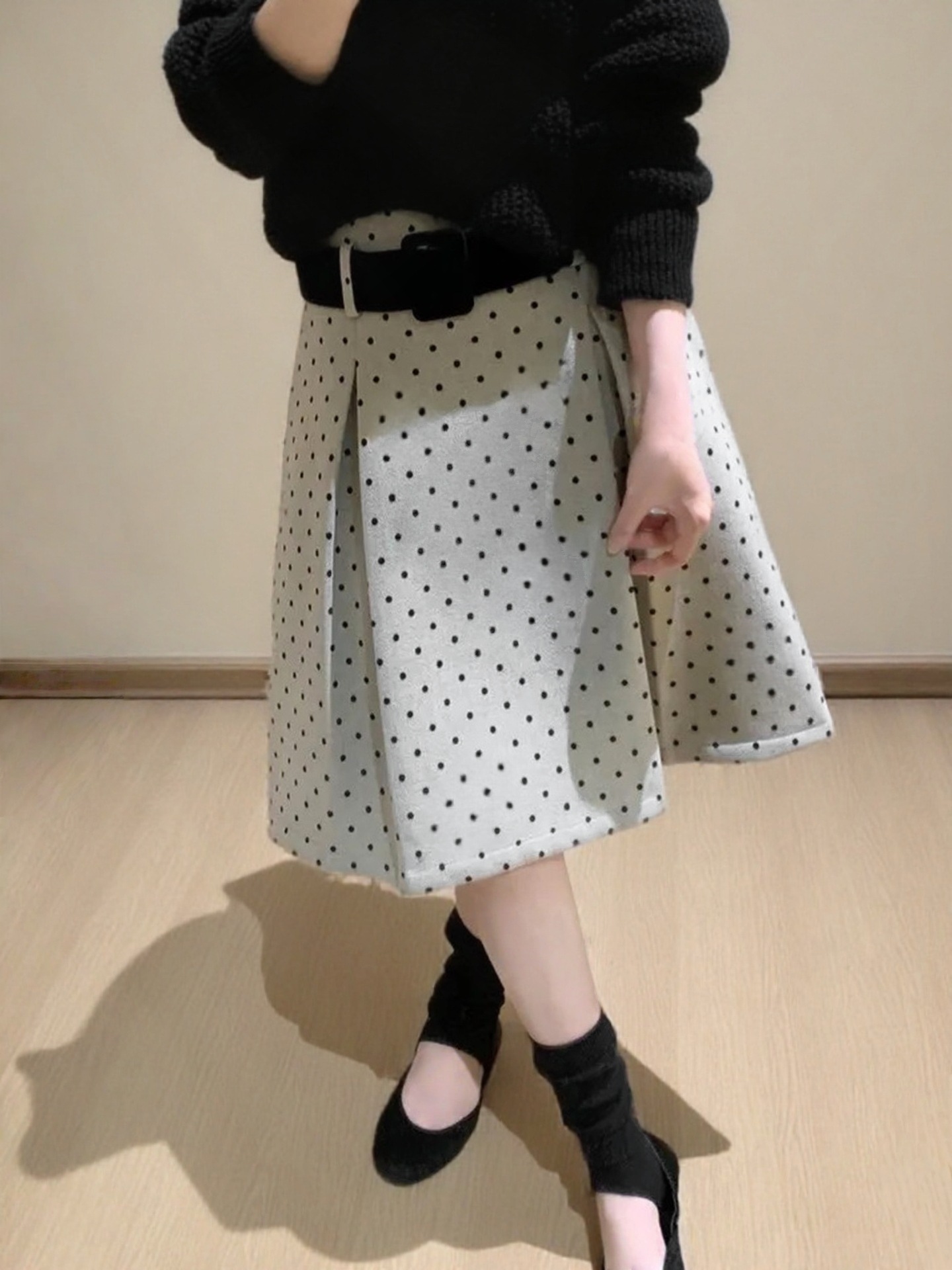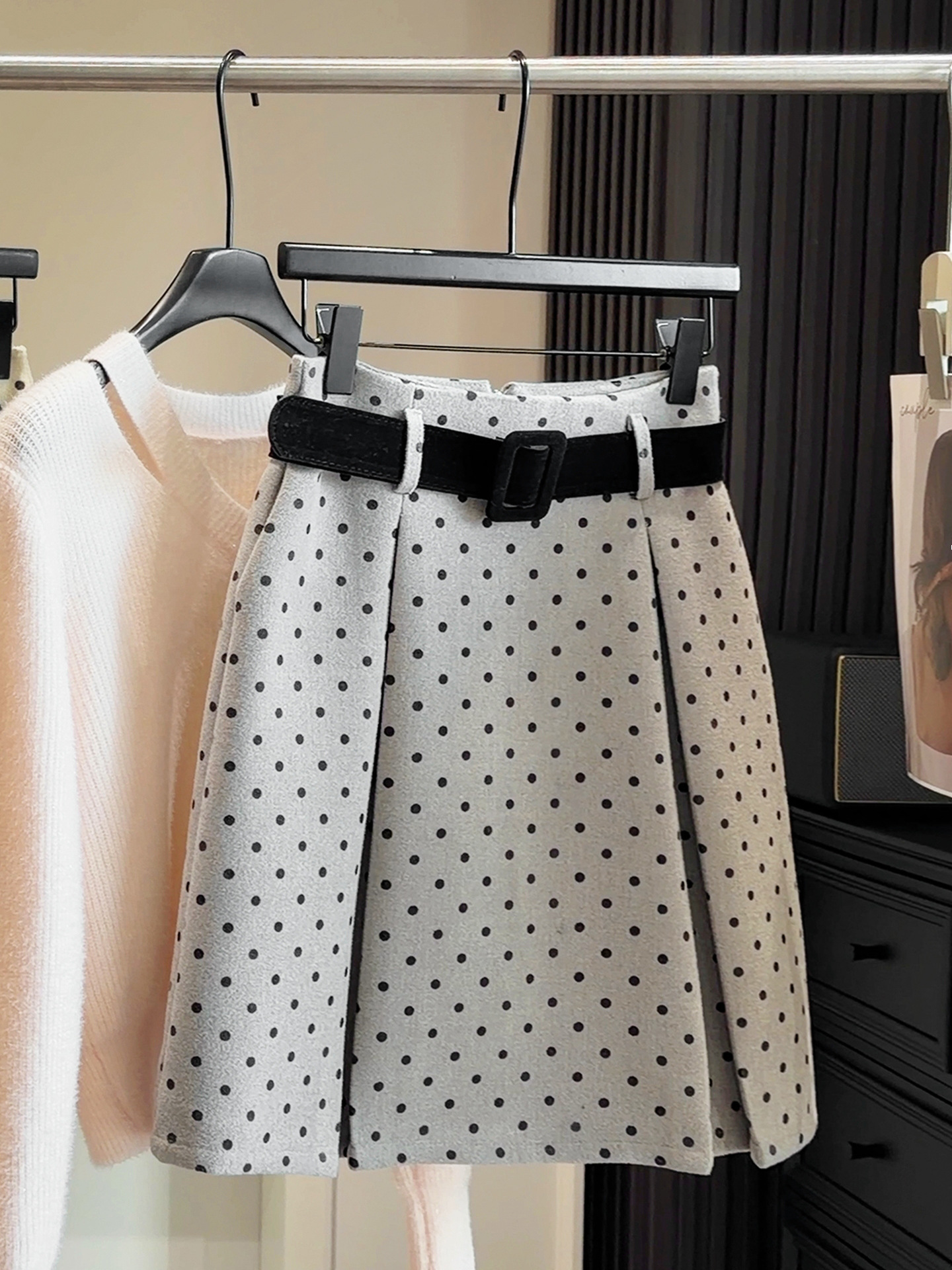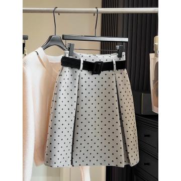 FA53648# 复古波点高腰毛呢半身裙女秋冬新款百搭修身显瘦A字百搭中裙