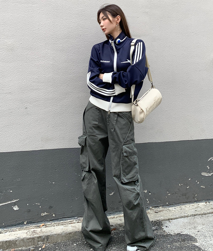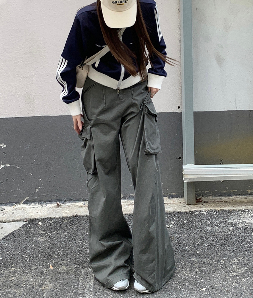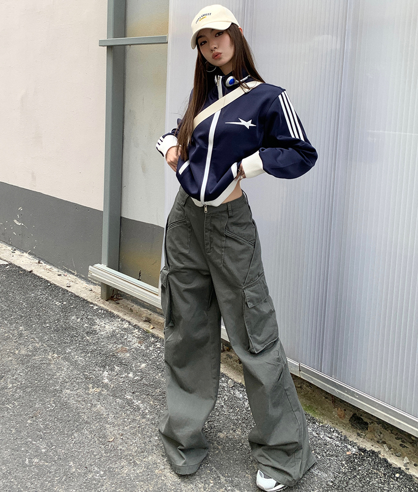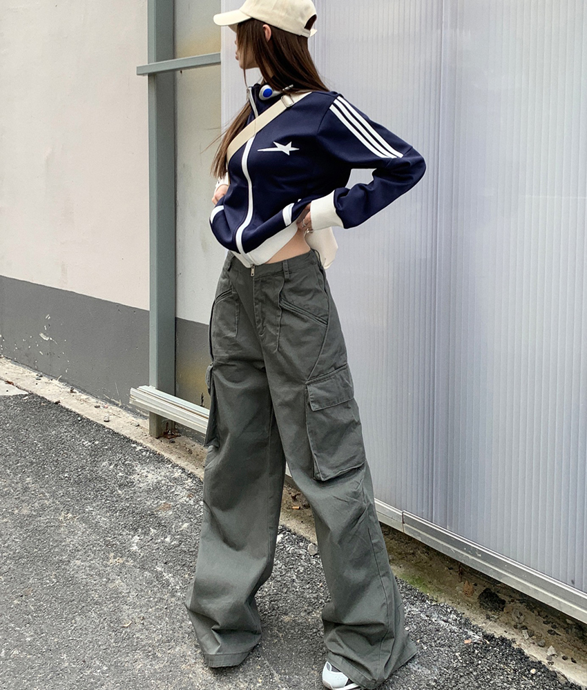 FA53672# 春装新款设计感多口袋工装裤女宽松休闲长裤拖地阔腿裤潮