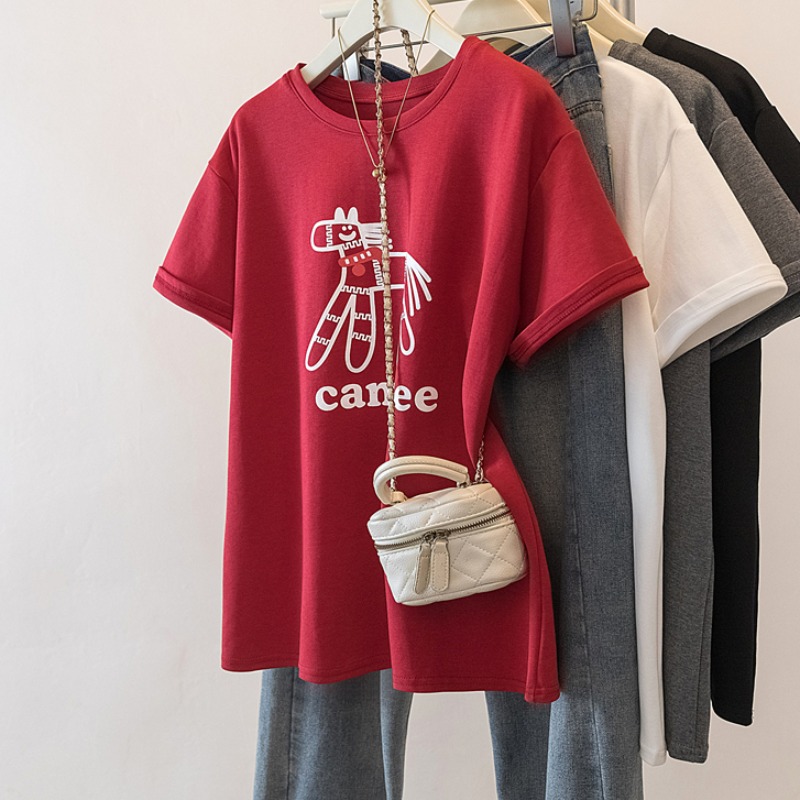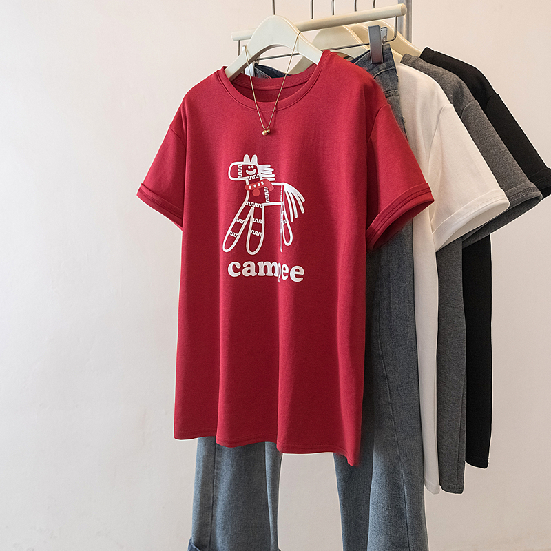 FA54827# 大码新年红色短袖T恤女新款马年本命年宽松百搭上衣 服裝批發女裝批發服飾貨源