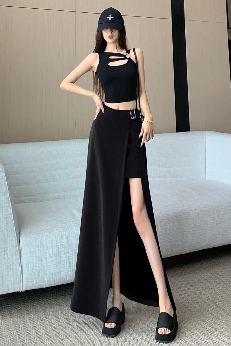 FA55124# 胖MM西装修身休闲半身裙女不规则显瘦设计感高腰a字中长款裙 服裝批發女裝批發服飾貨源