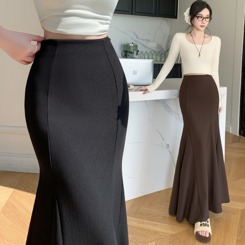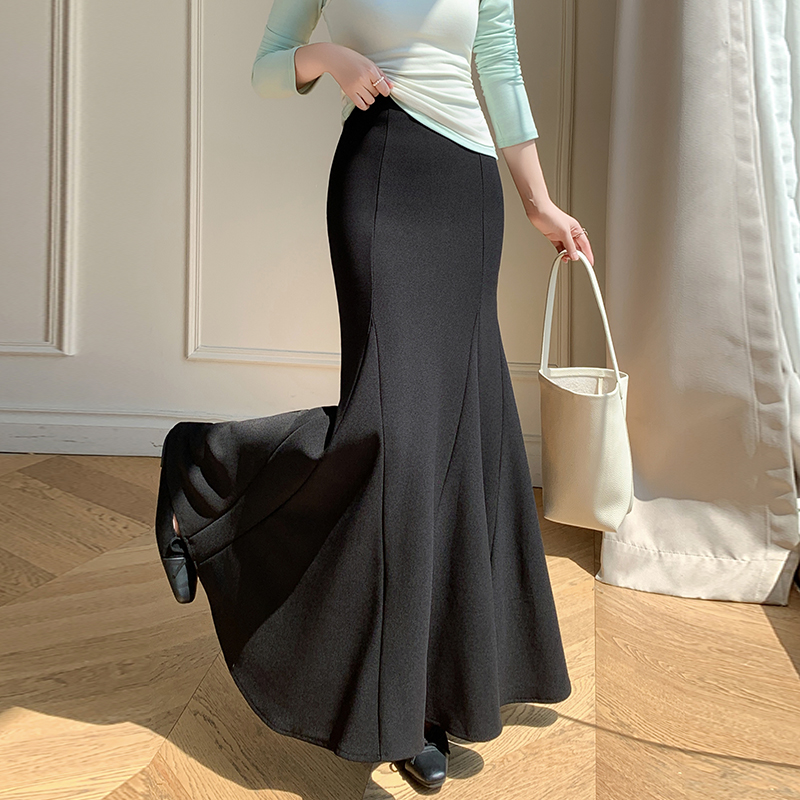 FA55301# 春夏半身裙女弹力百搭鱼尾裙黑色高腰中长裙款半身裙 服裝批發女裝批發服飾貨源