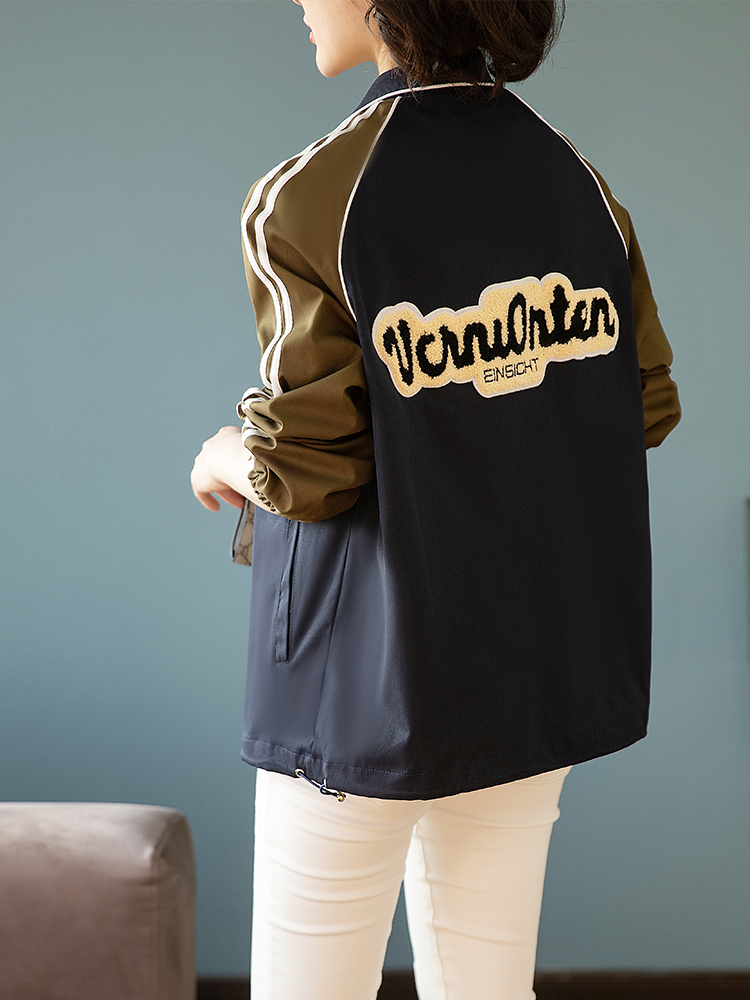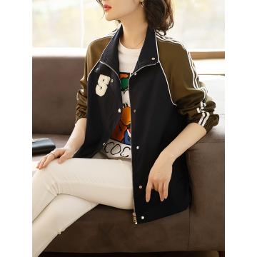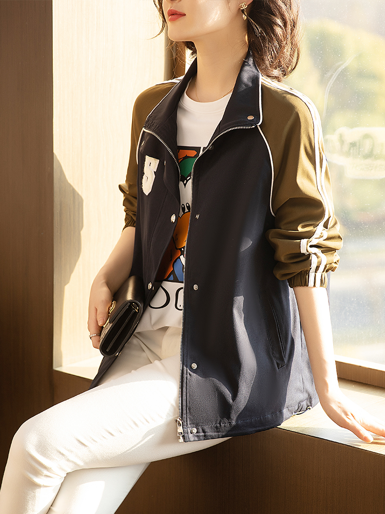 FA55337# 春季新款撞色拼接棒球服外套休闲运动夹克 服裝批發女裝批發服飾貨源