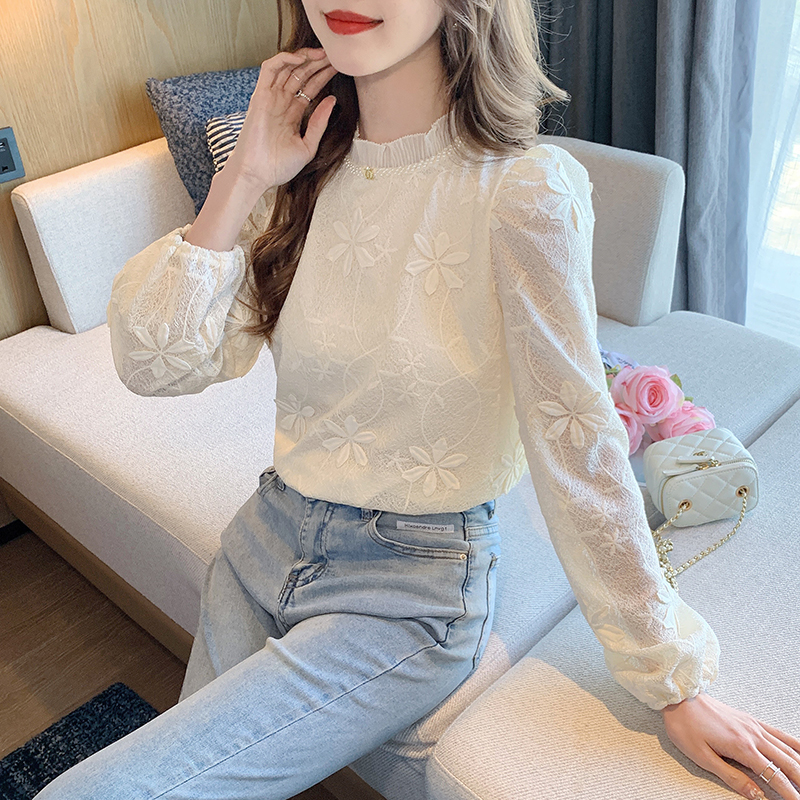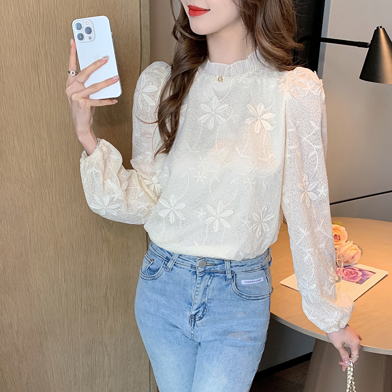 FA55351# 蕾丝衬衫女装洋气小众淑女雪纺宽松洋气时尚小衫长袖上衣 服裝批發女裝批發服飾貨源