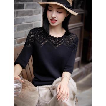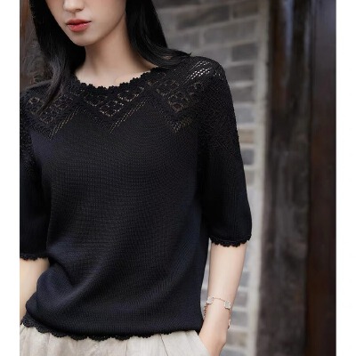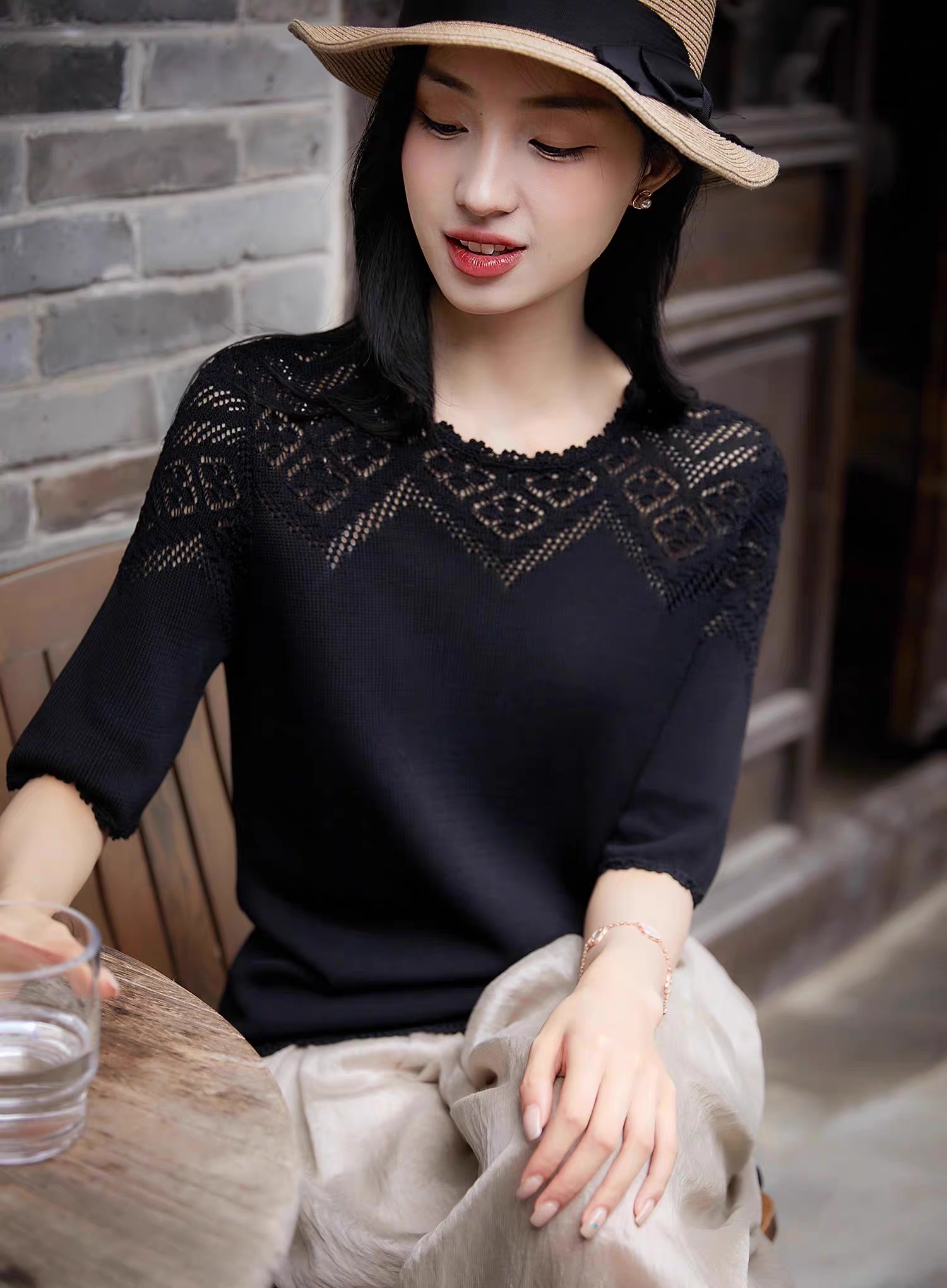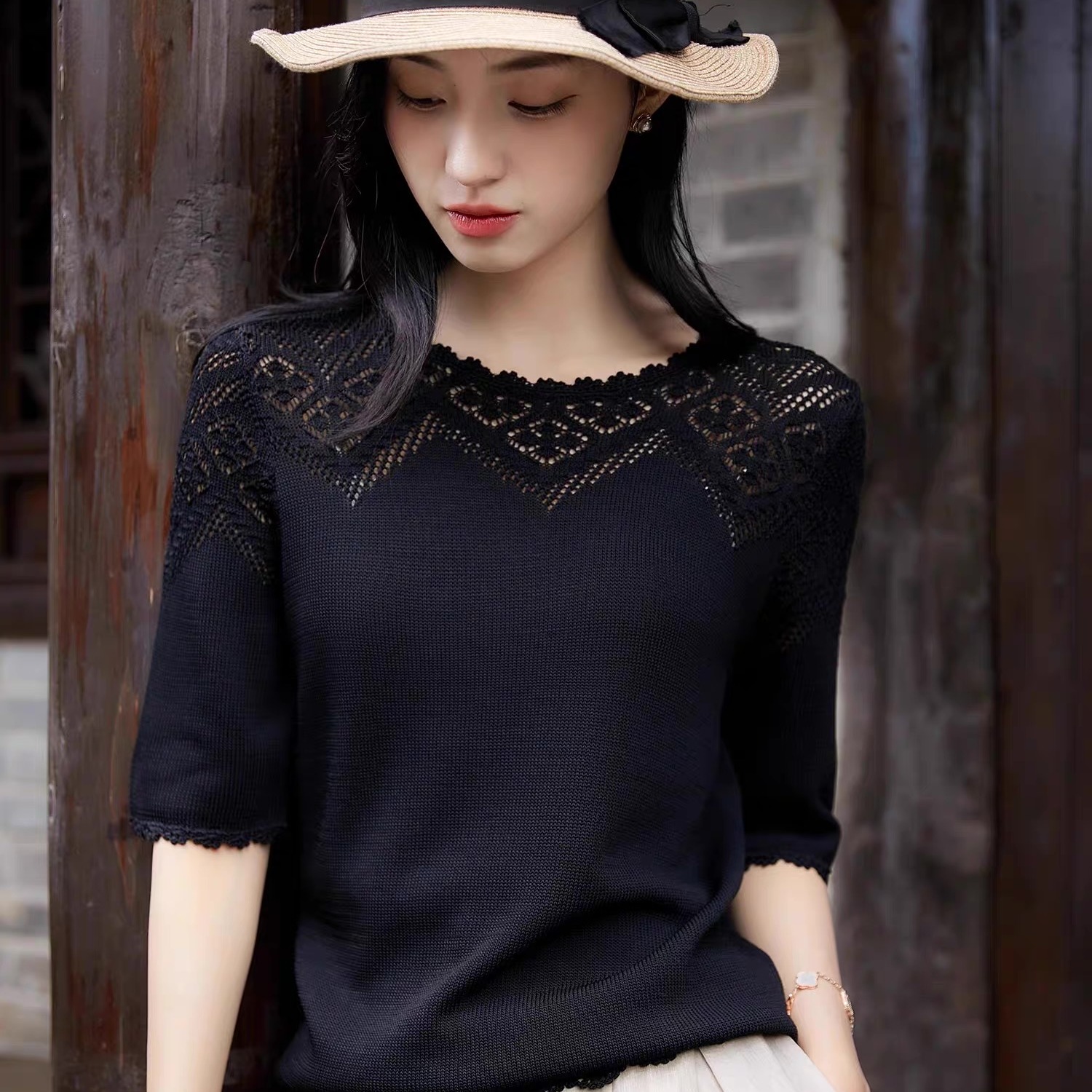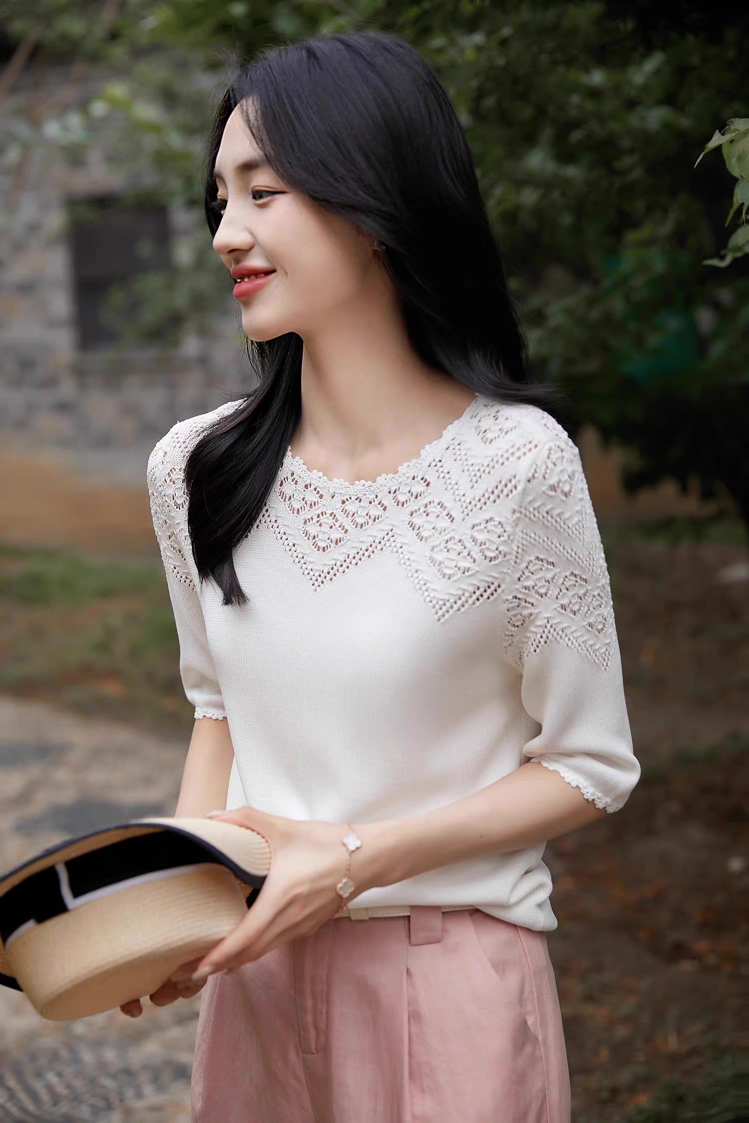 FA55660# 塑造篙贵典雅穿搭亲肤舒适花边7针挑洞镂空+钩针通勤小上衣 服裝批發女裝批發服飾貨源