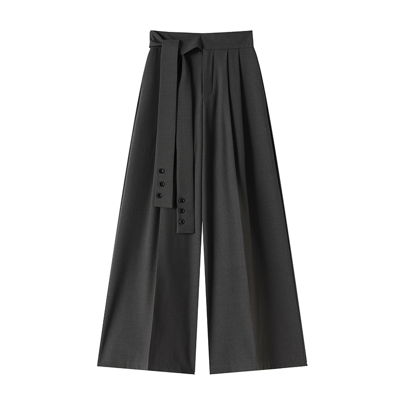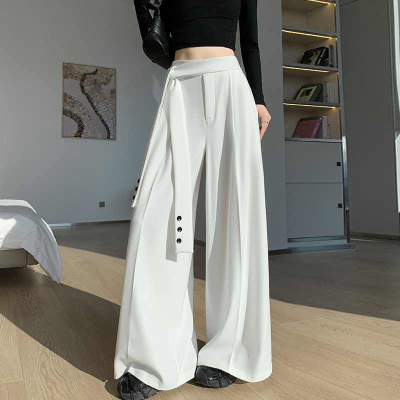 绑带西装阔腿裤女春季设计感高腰垂感直筒宽松休闲拖地裤 服裝批發女裝批發服飾貨源