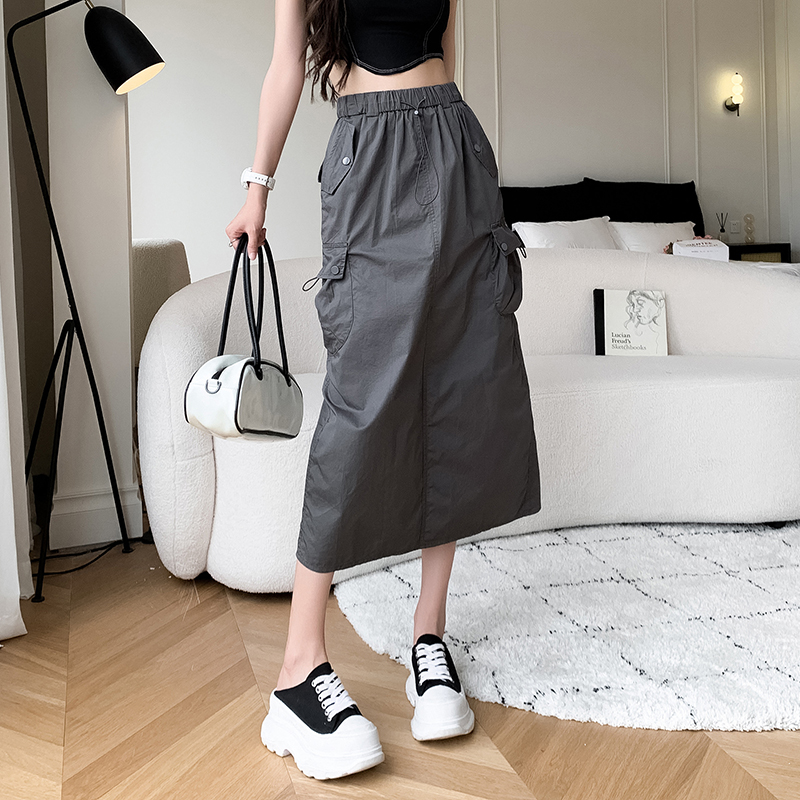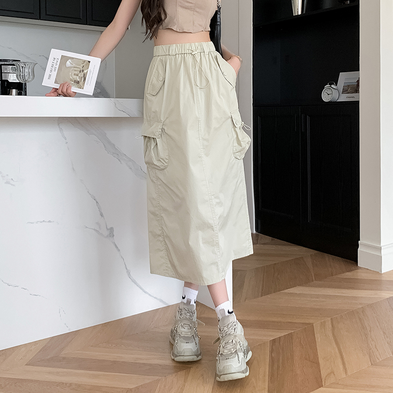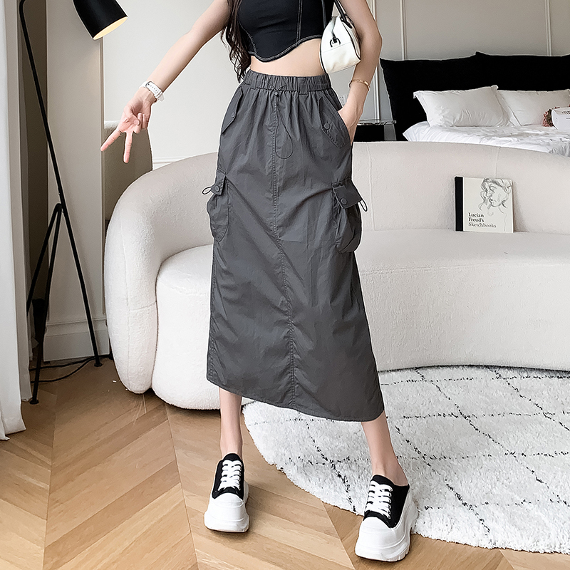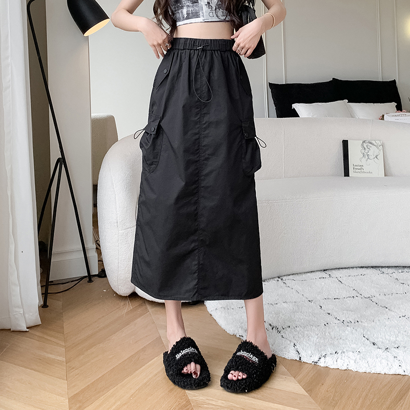 BY10809# 春夏新款半身裙大码工装裙设计感松紧腰休闲A字中长款辣妹裙 服裝批發女裝批發服飾貨源