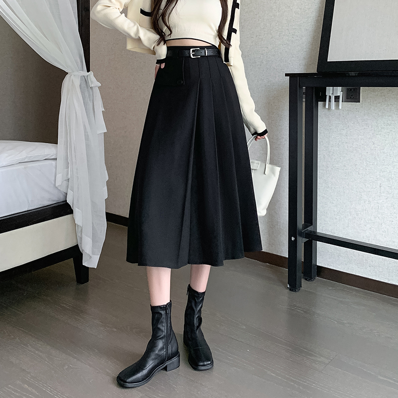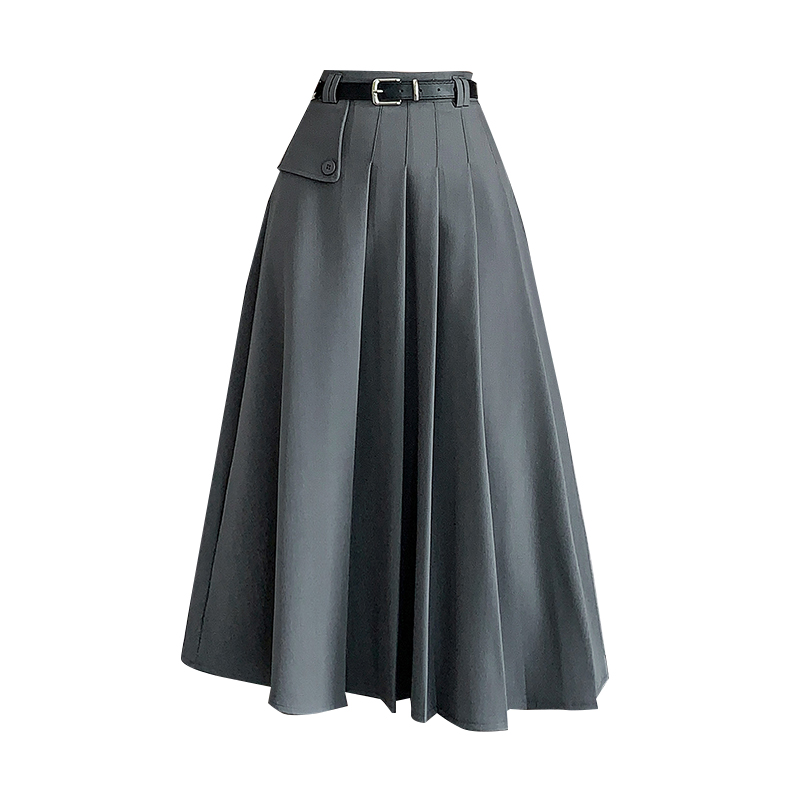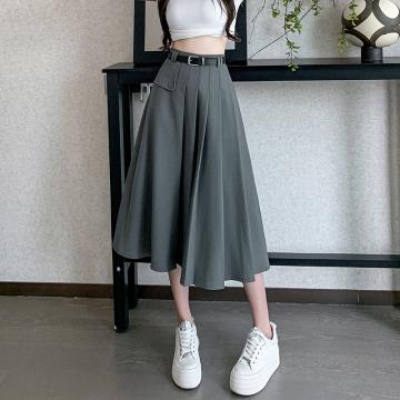 BY10810# 春夏新款大摆褶皱遮胯休闲西装长裙高腰中长款百褶半身裙 服裝批發女裝批發服飾貨源