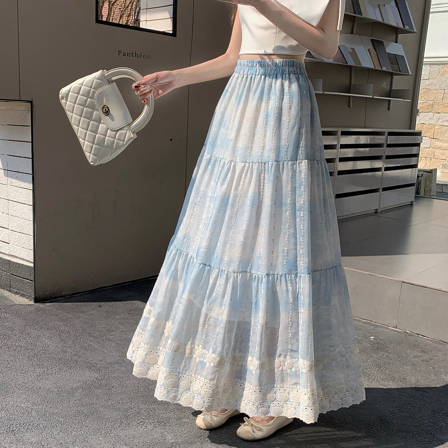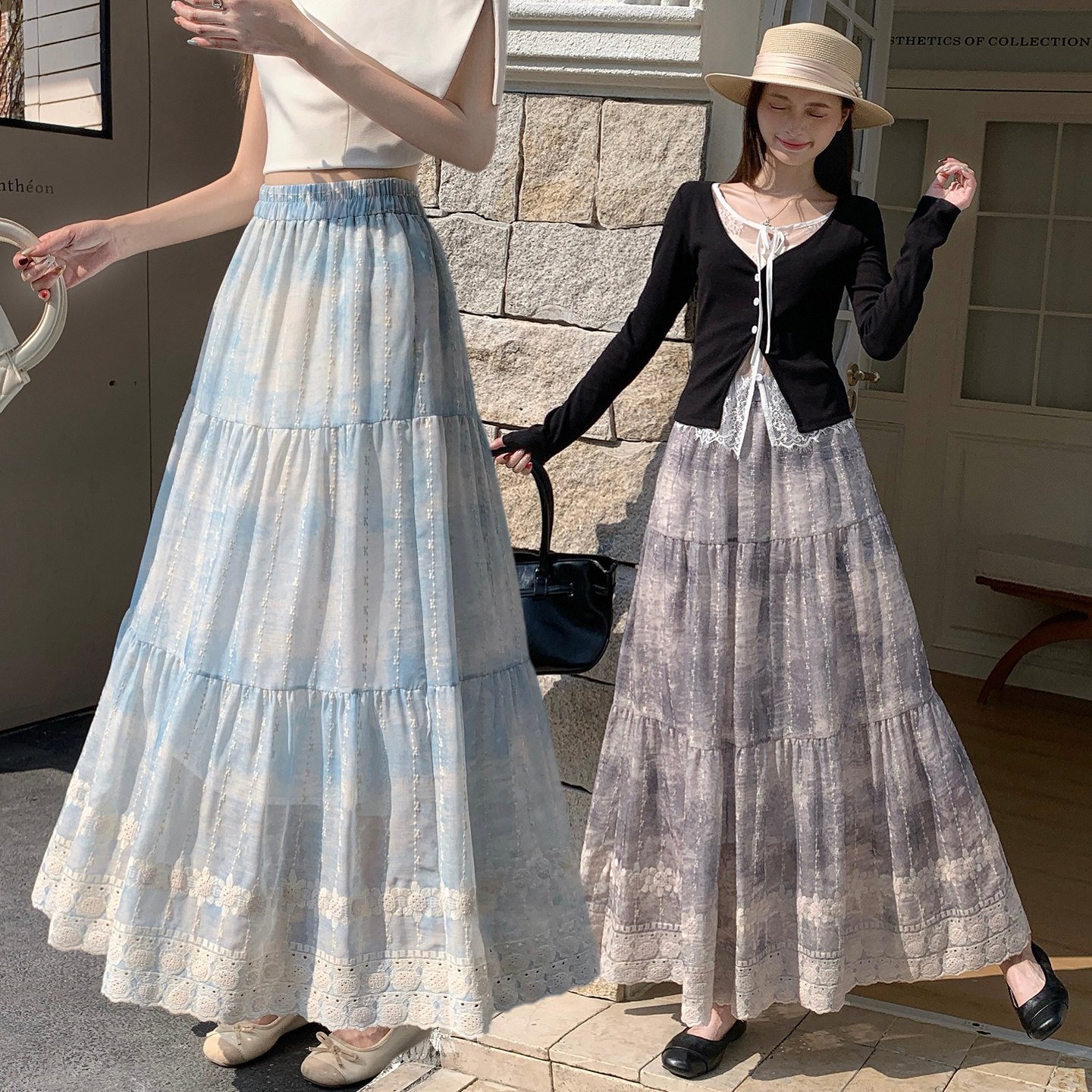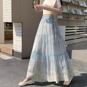 新中式国风刺绣棉麻半身裙女春季新款高腰显瘦蛋糕裙长裙半裙 服裝批發女裝批發服飾貨源