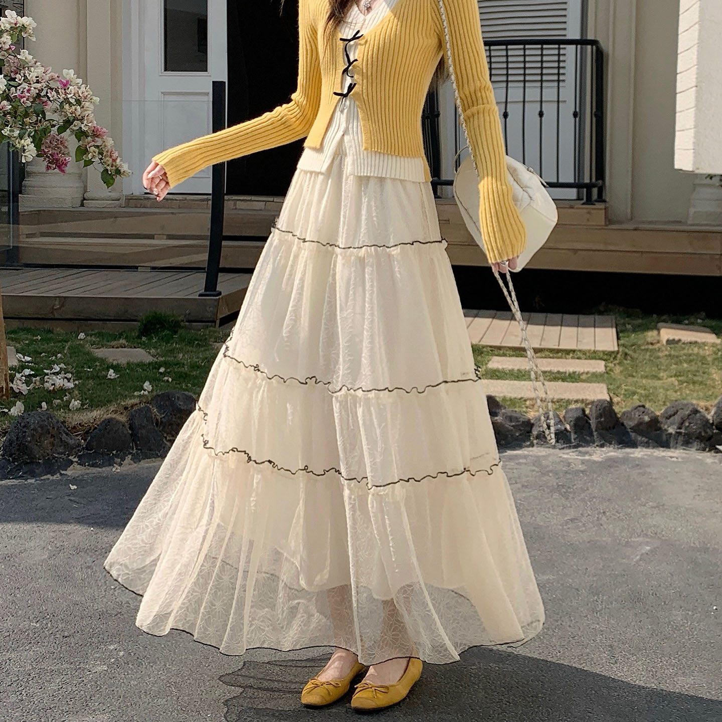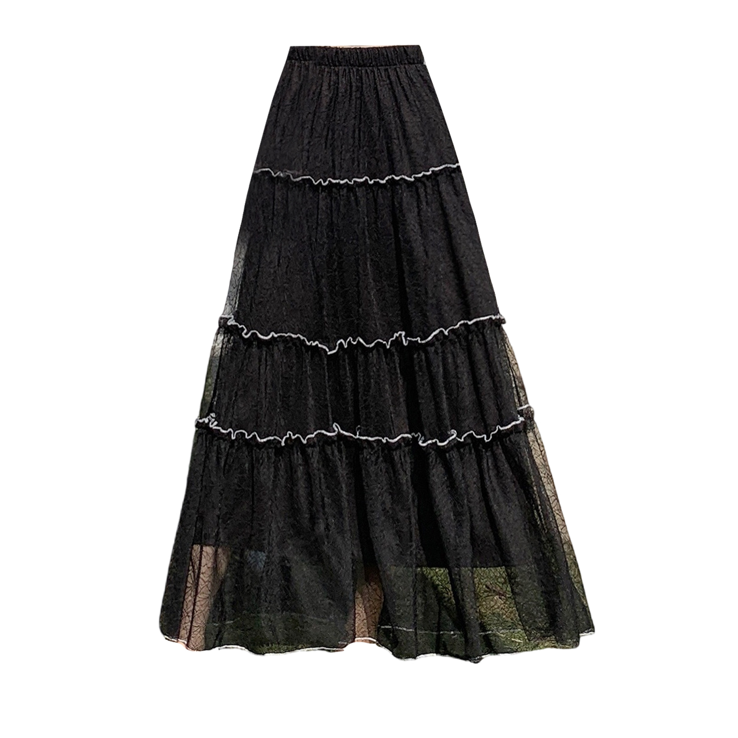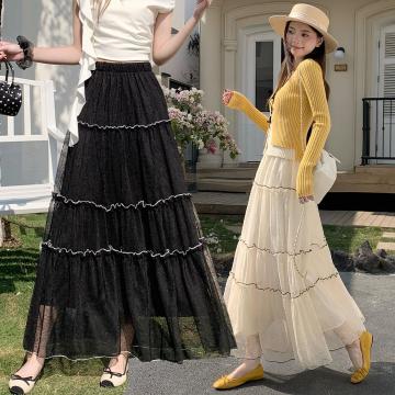 法式高级感蕾丝半身裙女新款春显瘦松紧腰大裙摆长裙子蛋糕裙 服裝批發女裝批發服飾貨源