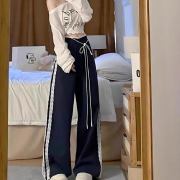 锦涤皱洋气女蕾丝花边拼接休闲裤女秋新款宽松阔腿休闲百搭长 服裝批發女裝批發服飾貨源