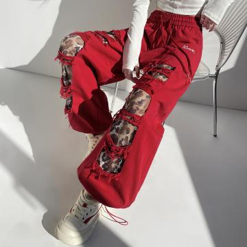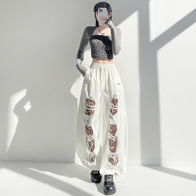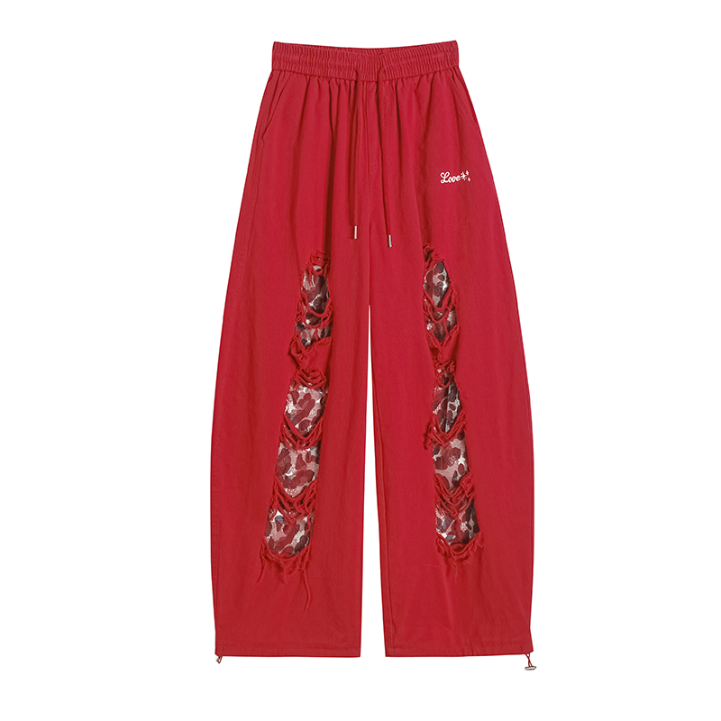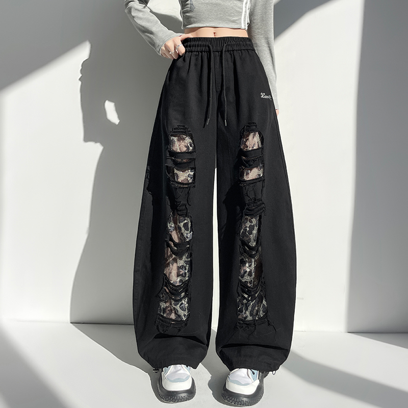 BY12408# 夏季新款全棉洗水破洞蕾丝拼接时尚阔腿束脚两穿弯刀裤女 服裝批發女裝批發服飾貨源