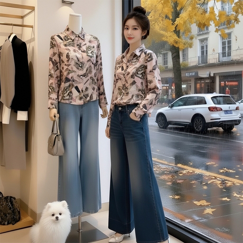 BY12536# 春季ins潮女装花衬衫港风长袖衬衣日系沙滩度假薄款 服裝批發女裝批發服飾貨源
