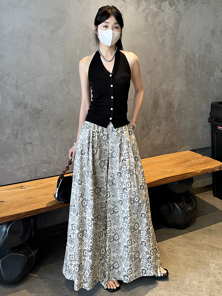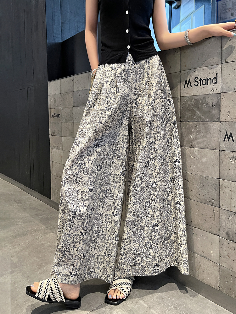 BY12922# 重工法式复古印花阔腿裙裤女夏季新款A字阔腿九分大腿裤 服裝批發女裝批發服飾貨源