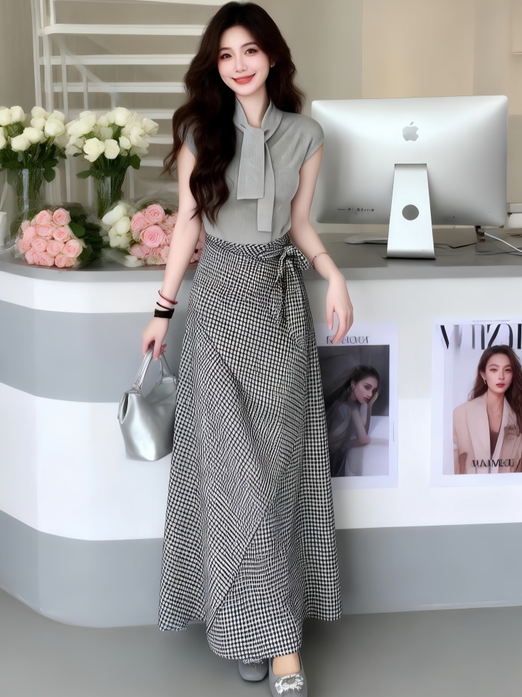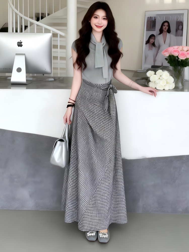 BY12935# 韩系高级穿搭一整套新款夏季法式气质收腰针织上衣长裙两件套 服裝批發女裝批發服飾貨源