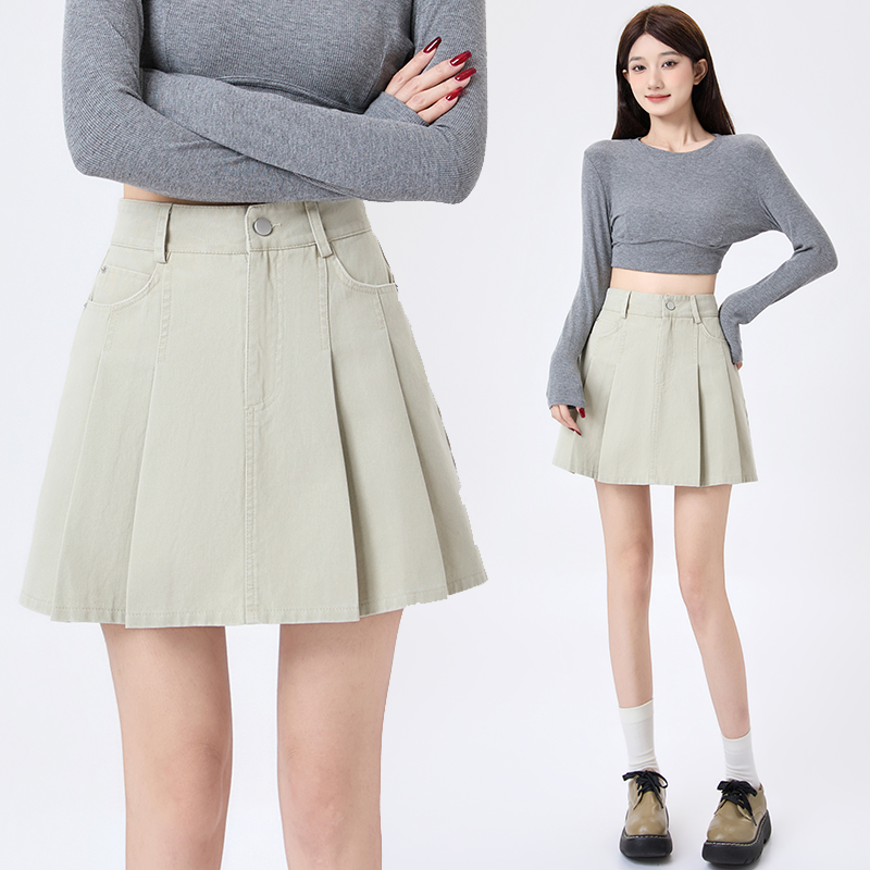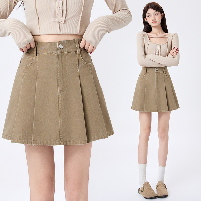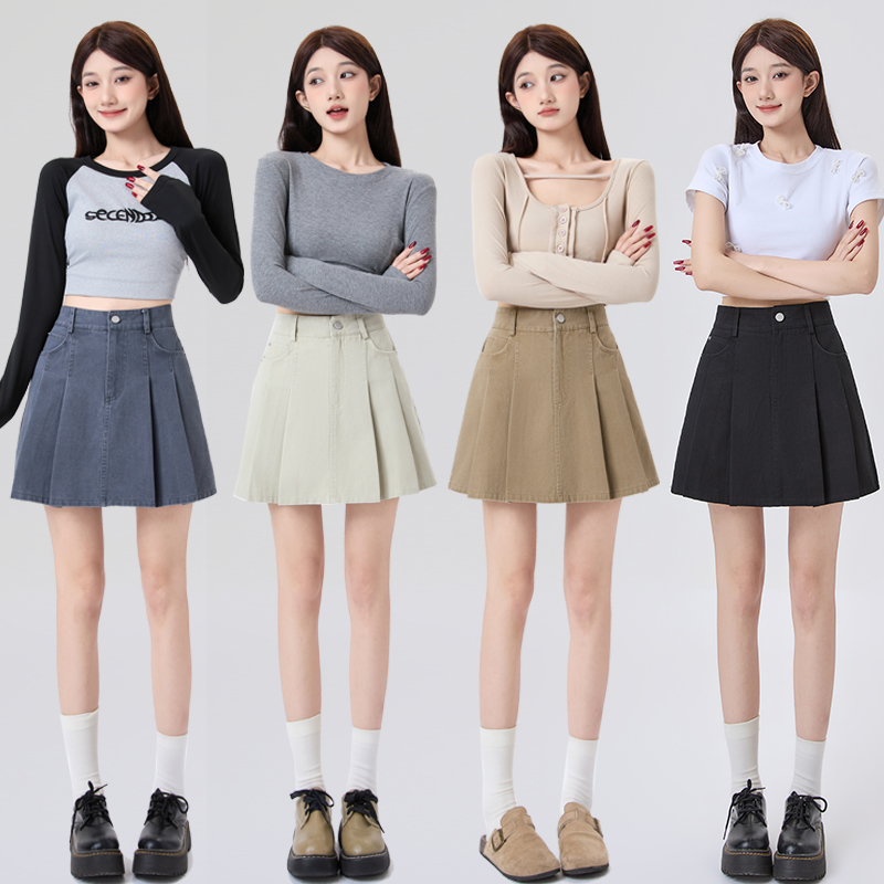 BY12965# 洗水牛仔百褶半身裙女春夏新款高腰显瘦防走光A字短裙 服裝批發女裝批發服飾貨源