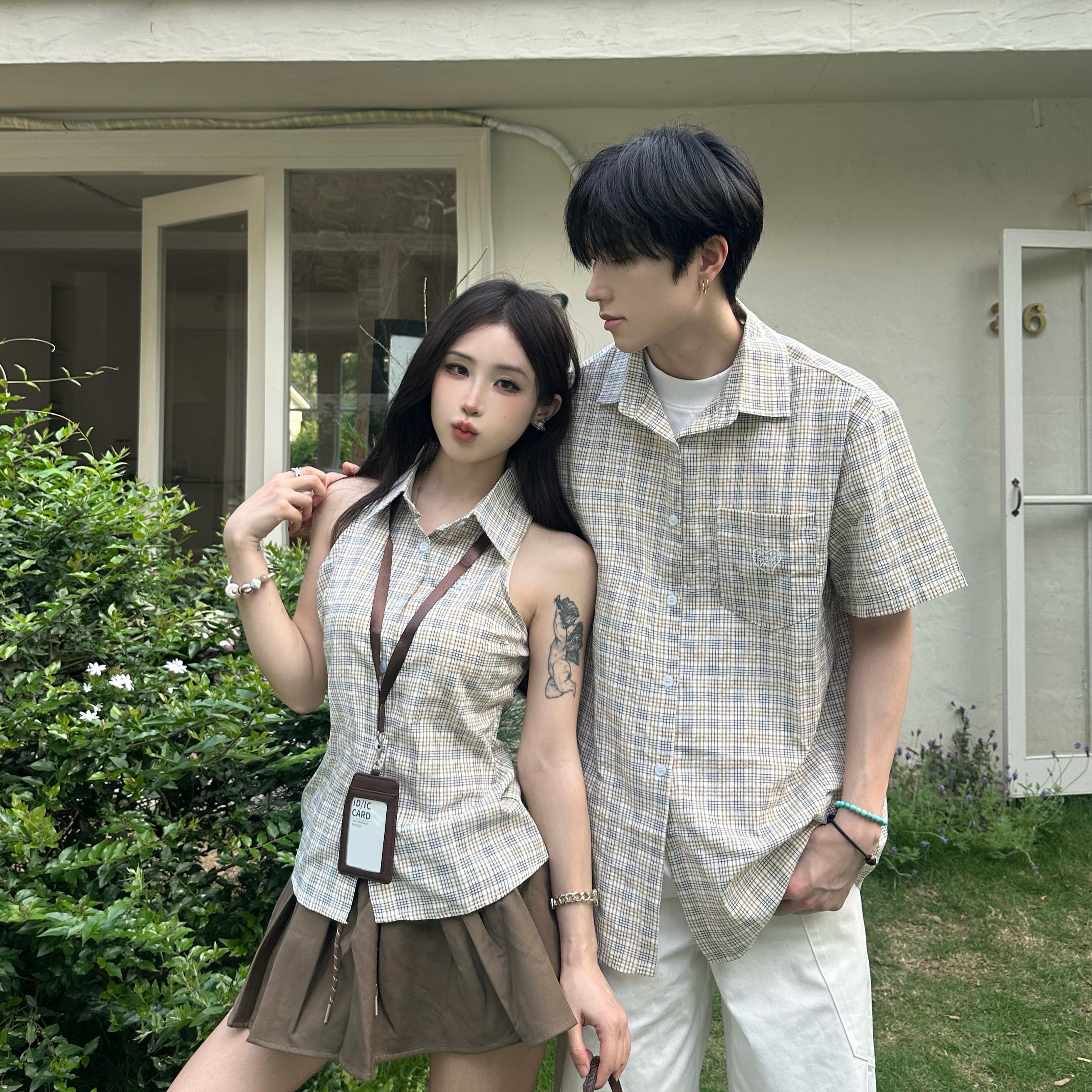 首页 > 所有情侣装 > BY14301# 情侣校园风夏季短袖衬衫男女格子 服裝批發女裝批發服飾貨源