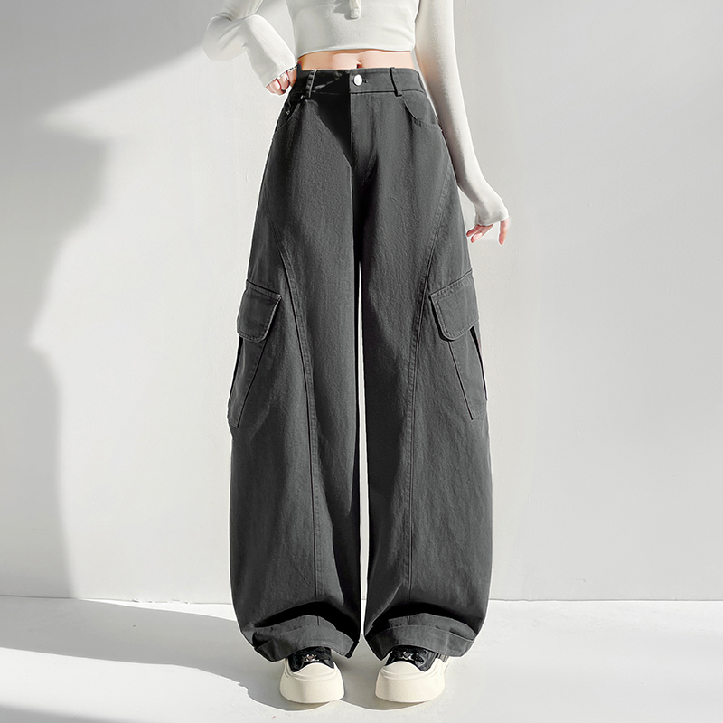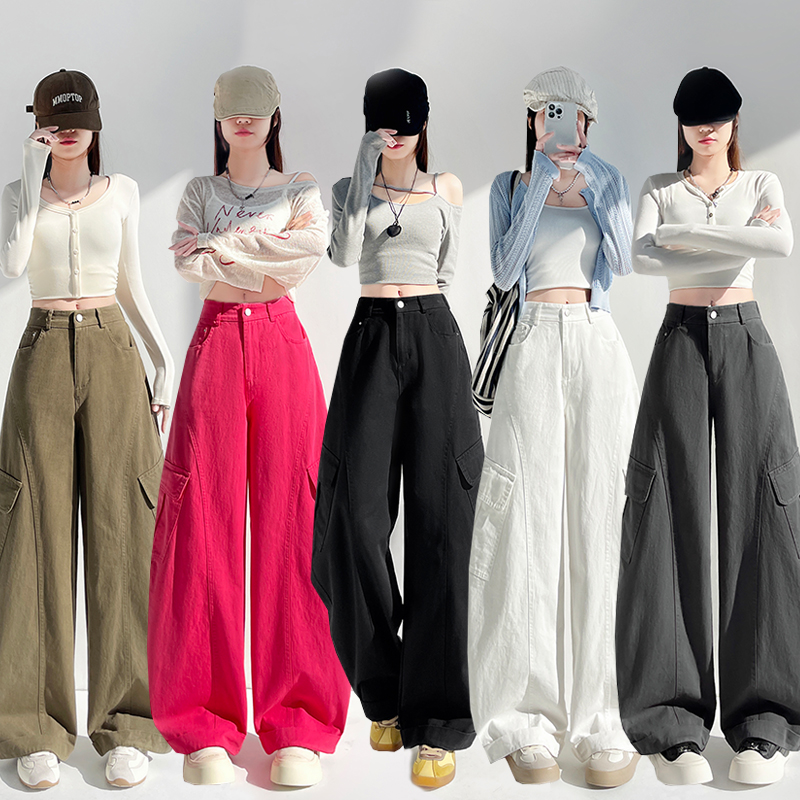BY14335# 春季全棉洗水工装裤美式时尚运动裤阔腿裤宽松休闲裤子女 服裝批發女裝批發服飾貨源