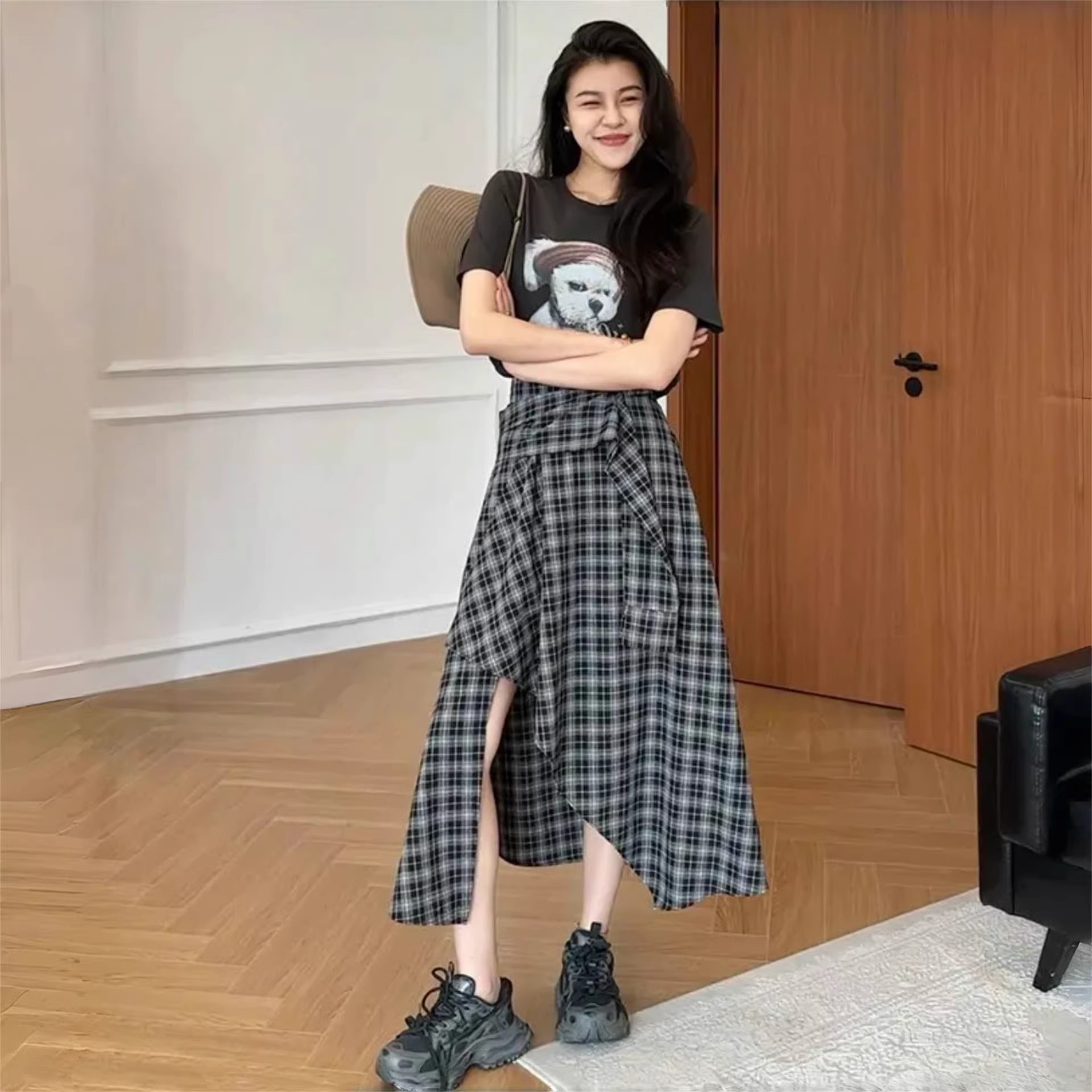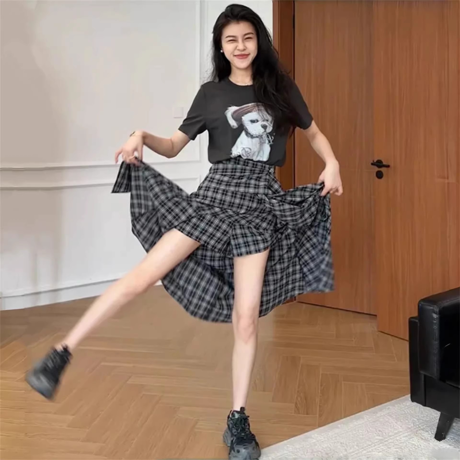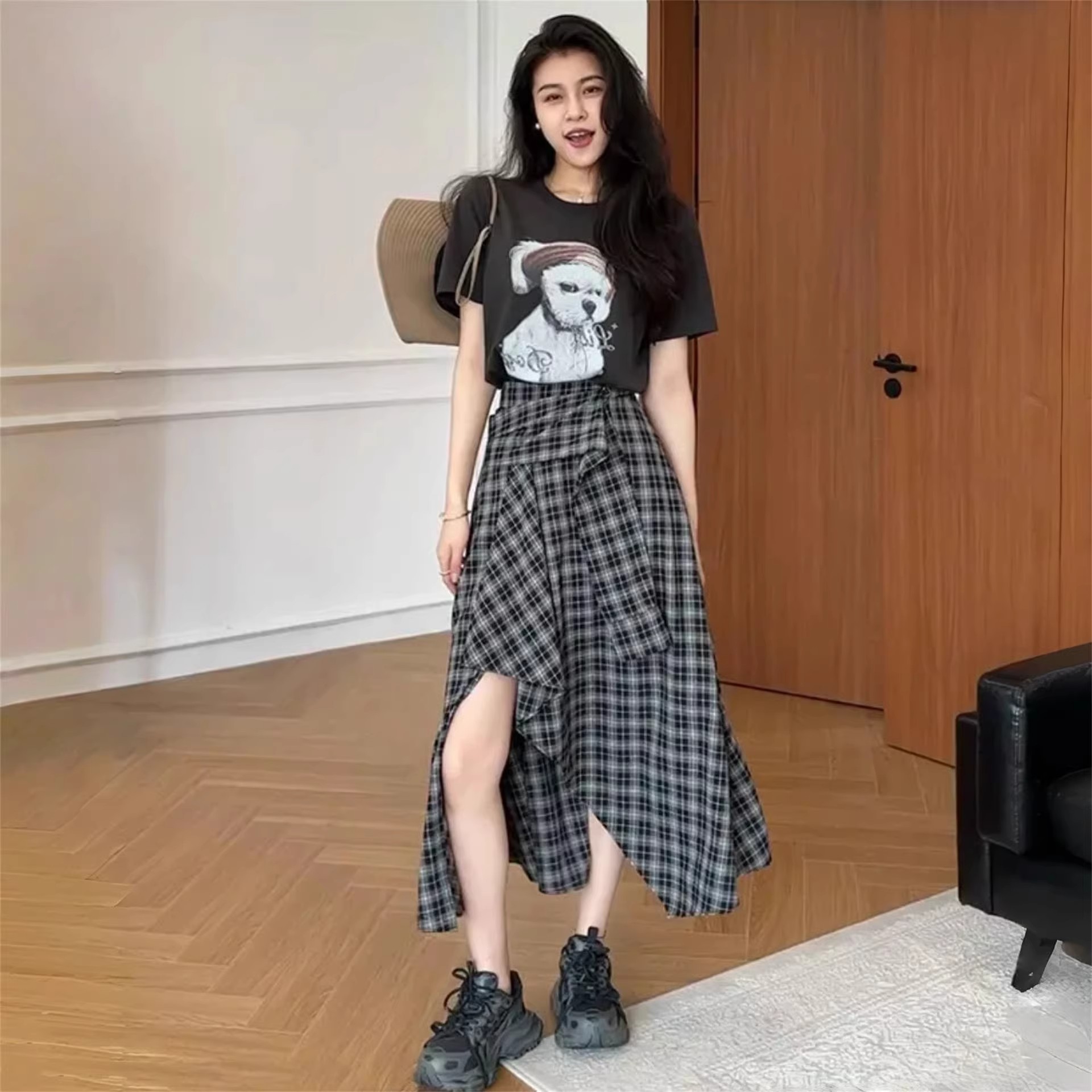首页 > 短裤、半身裙 > BY14439# 不规则黑白格纹半身裙女夏季新款时尚裙子服裝批發女裝批發服飾貨源