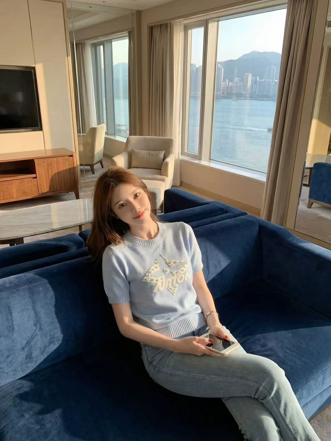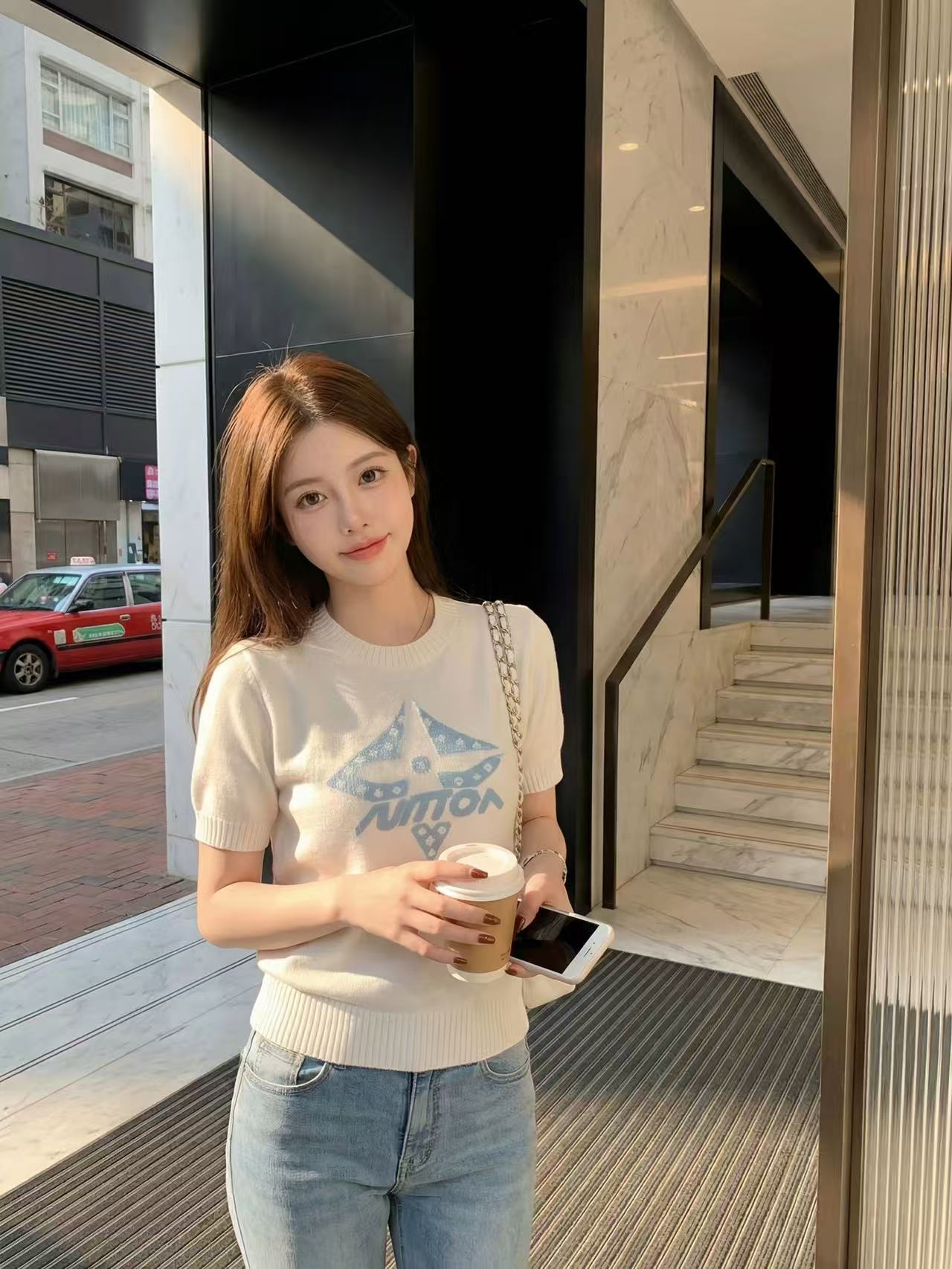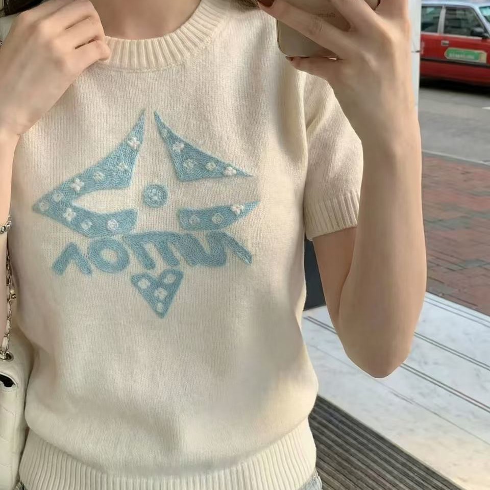 BY14461# 钟菲菲春款新款女装针织chic气质上衣短袖高端小资独特漂亮服裝批發女裝批發服飾貨源