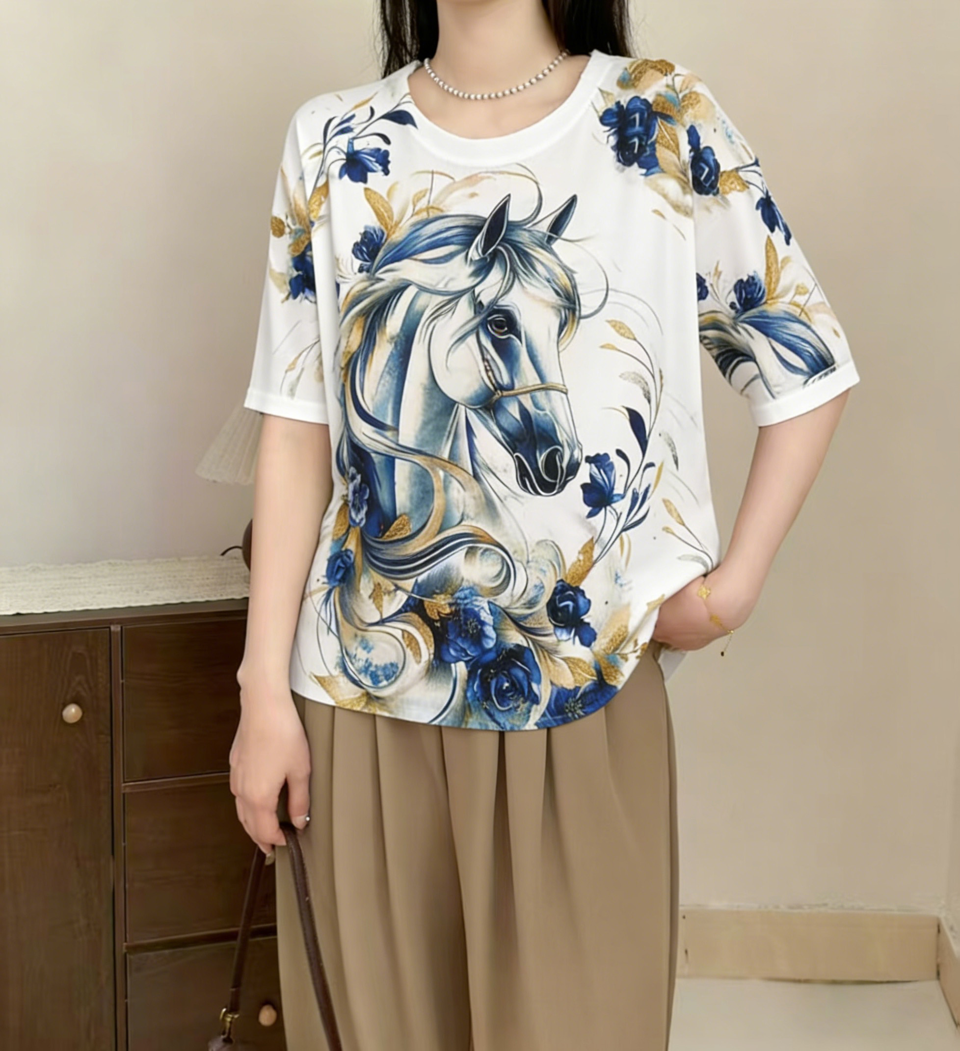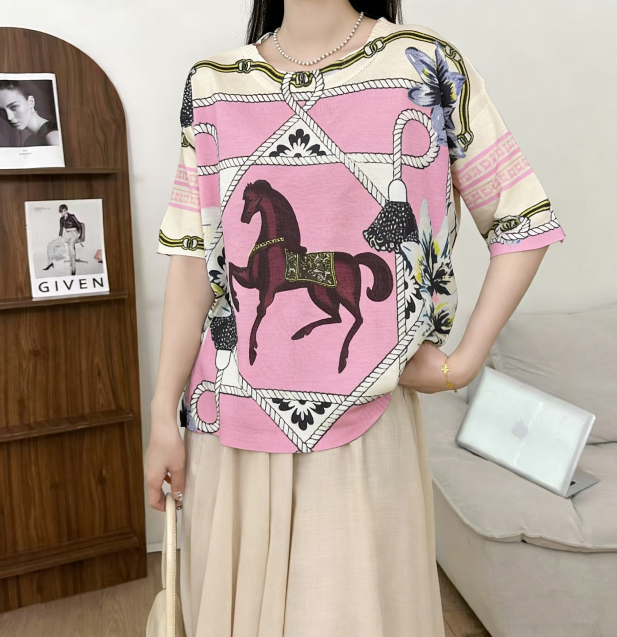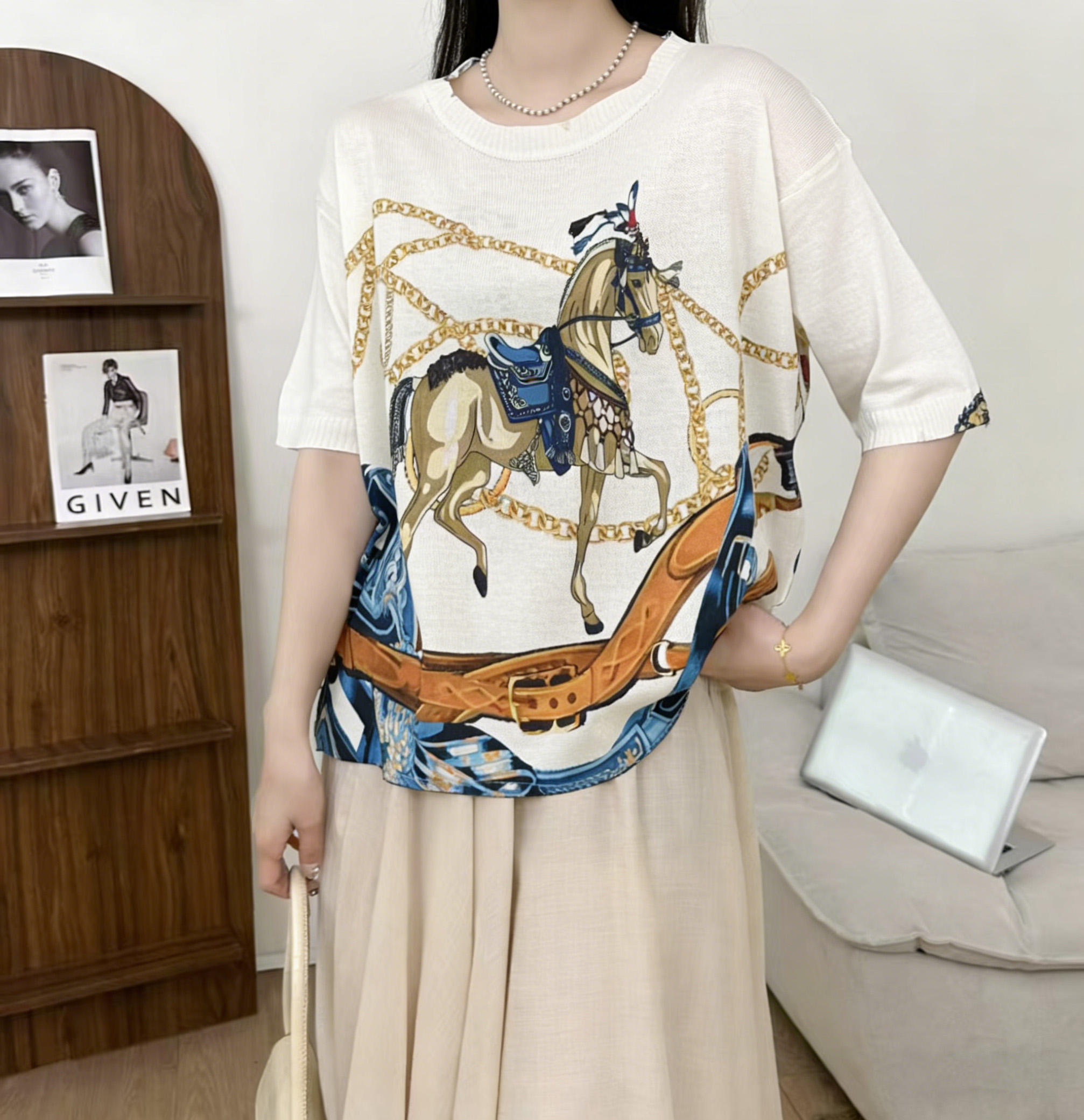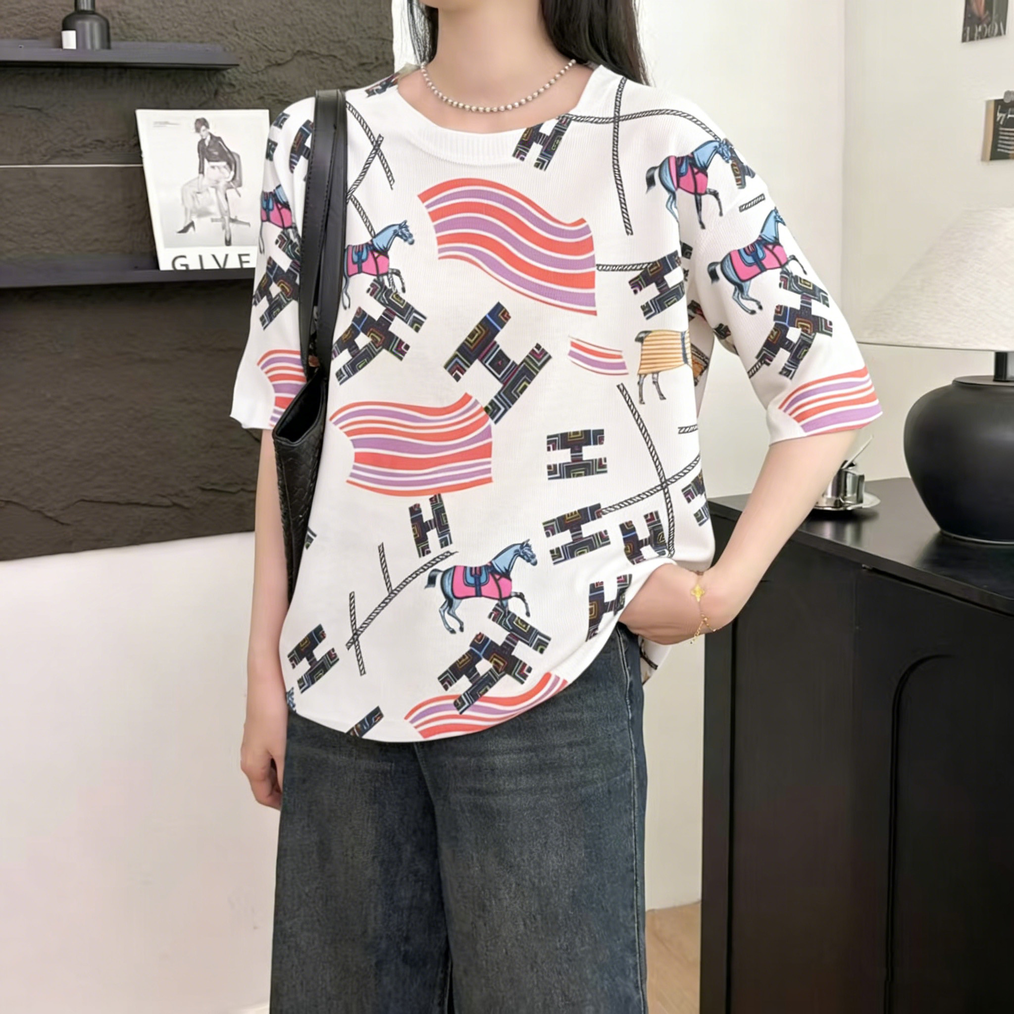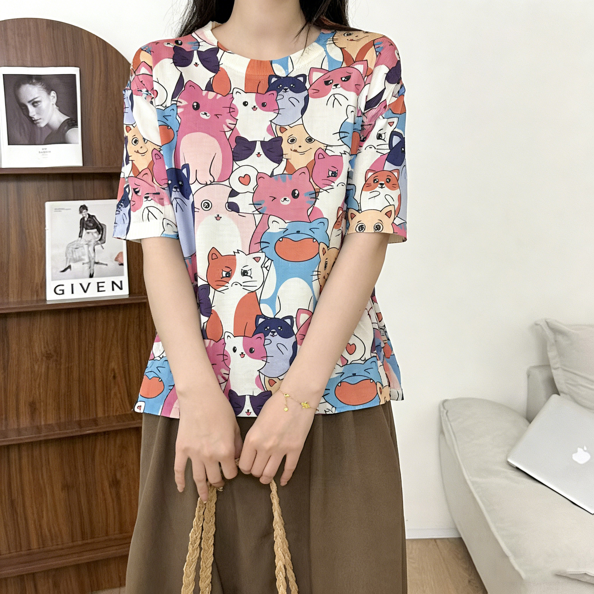 BY14470# 夏季女士薄款卡通印花半袖针织短袖t恤女新款慵懒风宽松上衣服裝批發女裝批發服飾貨源