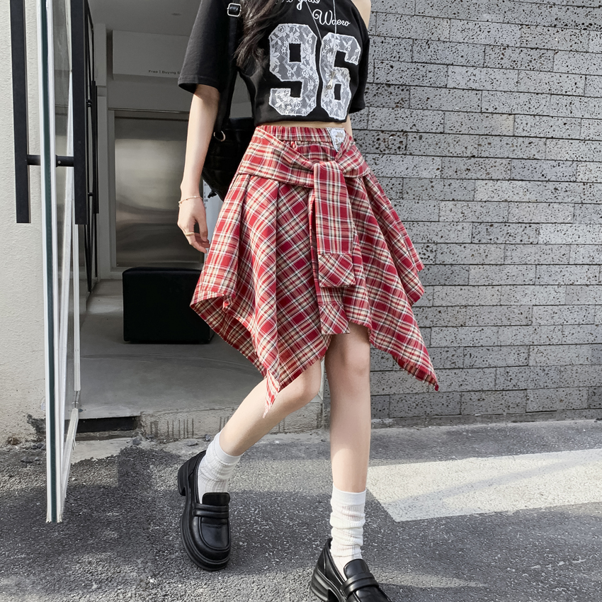 首页 > 短裤、半身裙 > BY14777# 小众复古不规则格子半身裙夏季高腰显瘦学院风防走光A字短裙 服裝批發女裝批發服飾貨源
