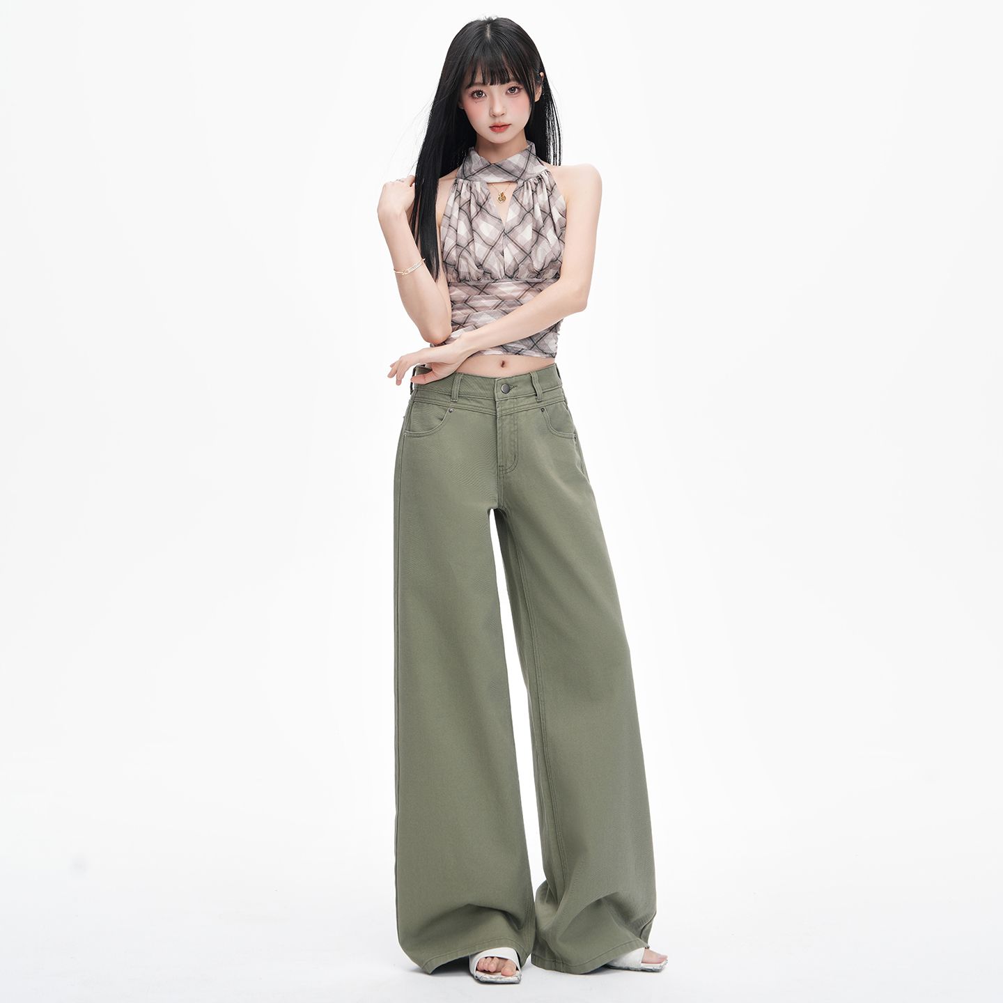 粉绿色长裤