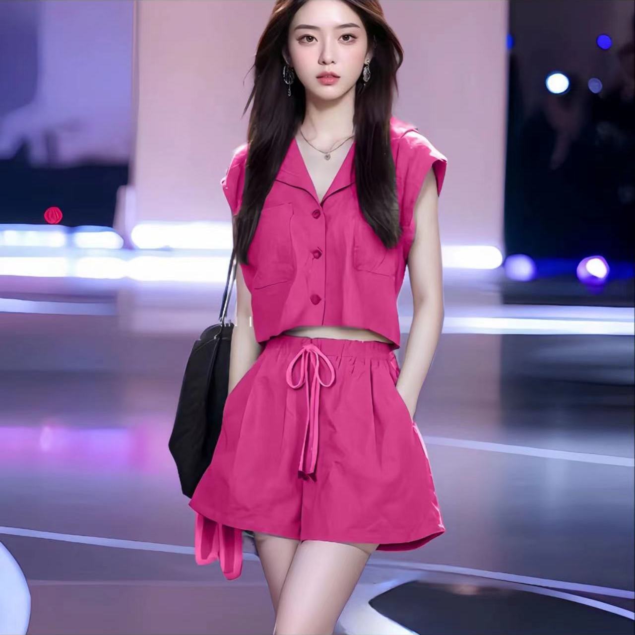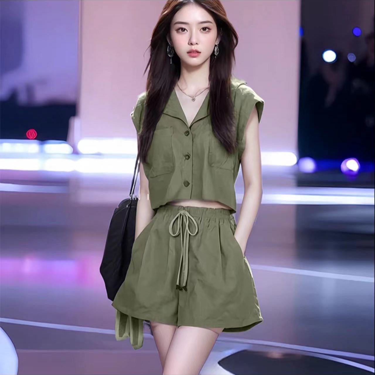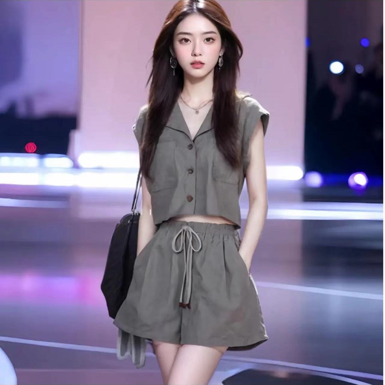 夏季新款盐系小香风时尚套装女显瘦显高上衣小个子短裤两件套
