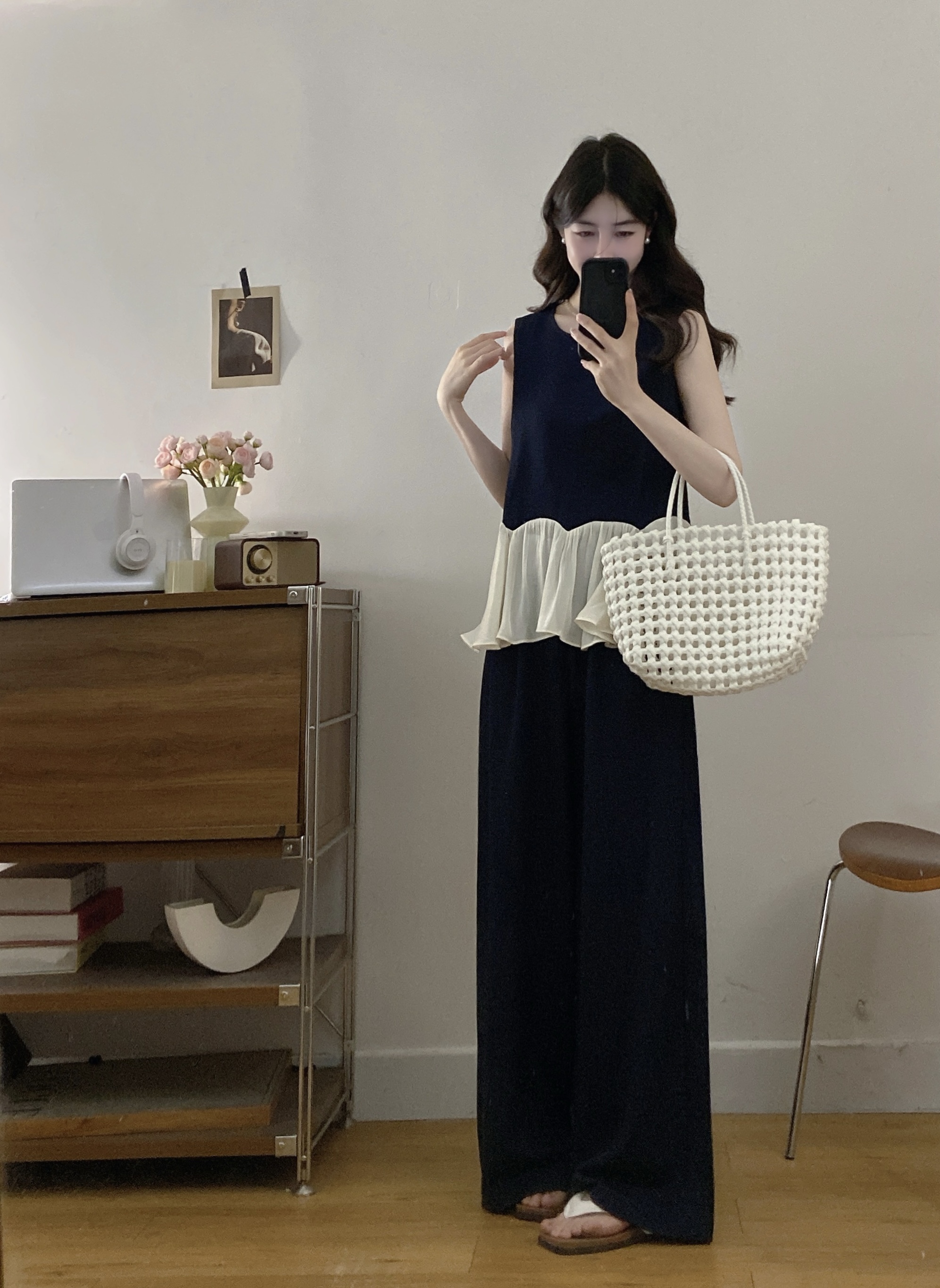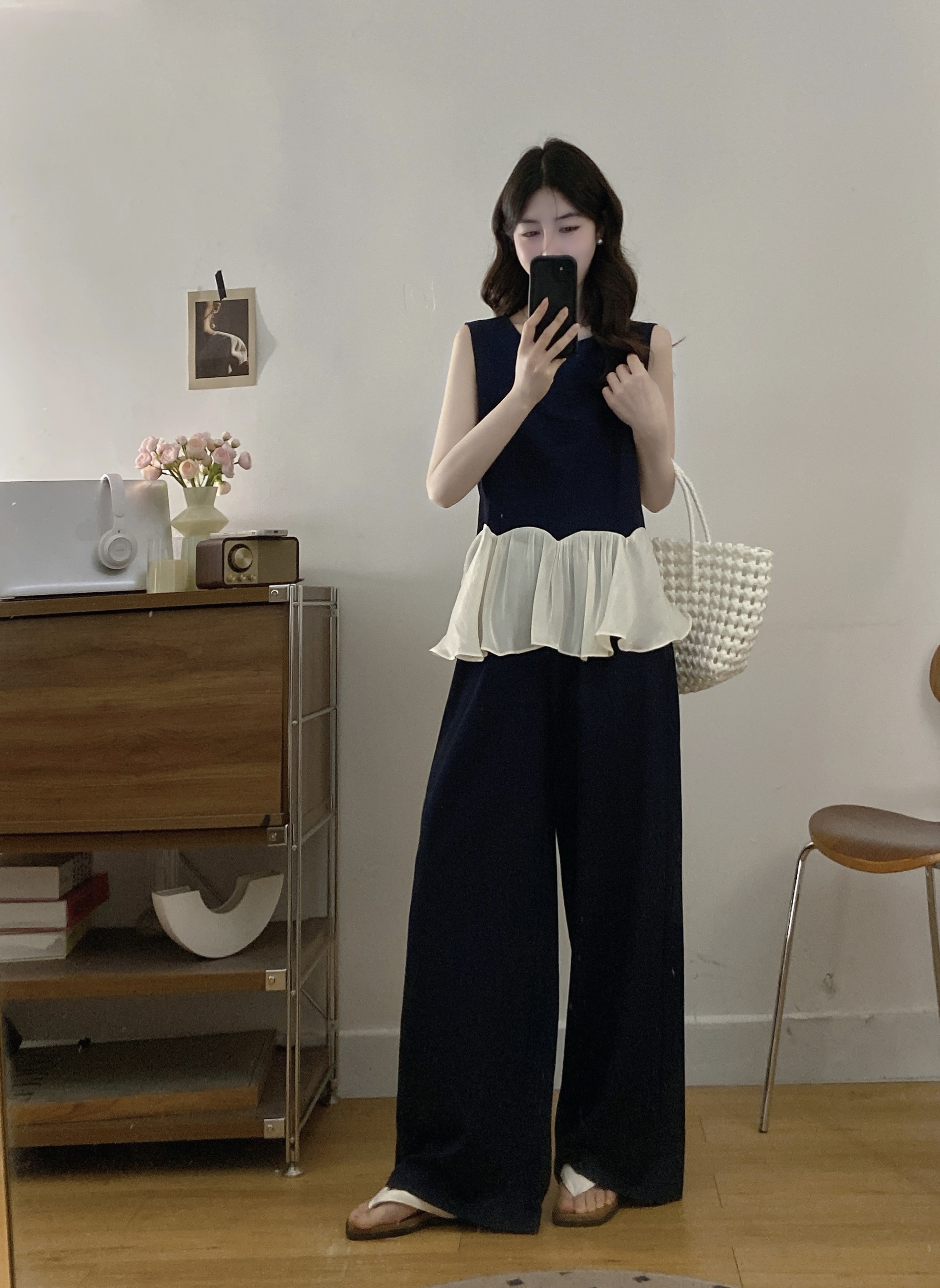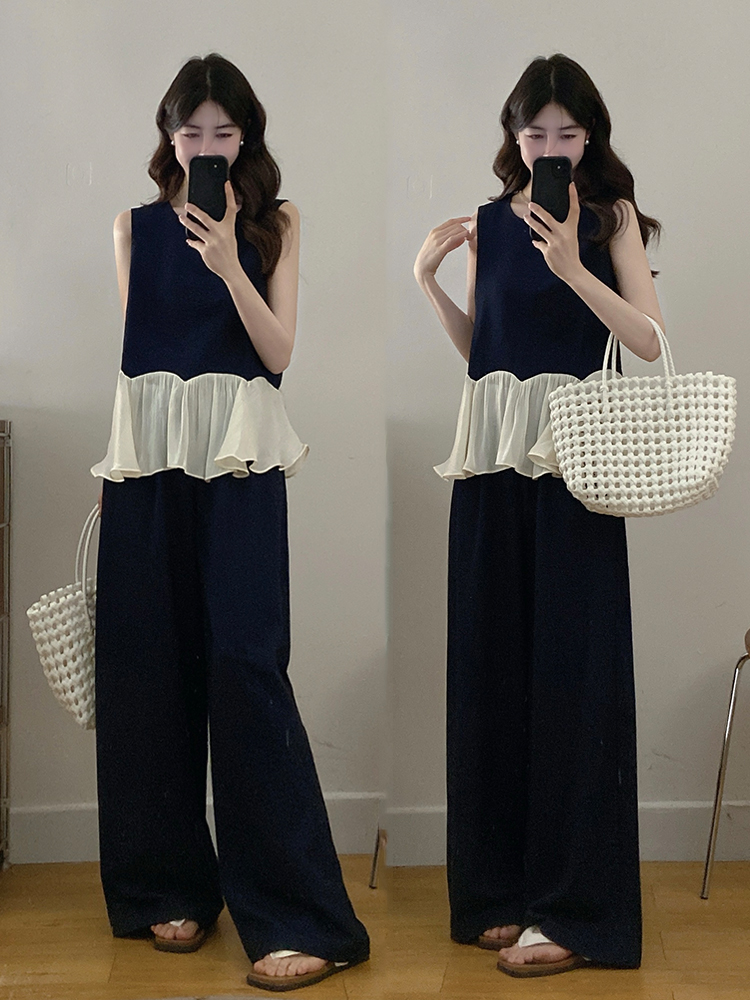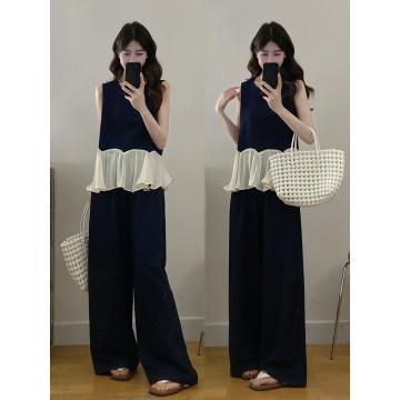 大码女装夏季新款韩系无袖上衣阔腿裤巨好看的背心套装