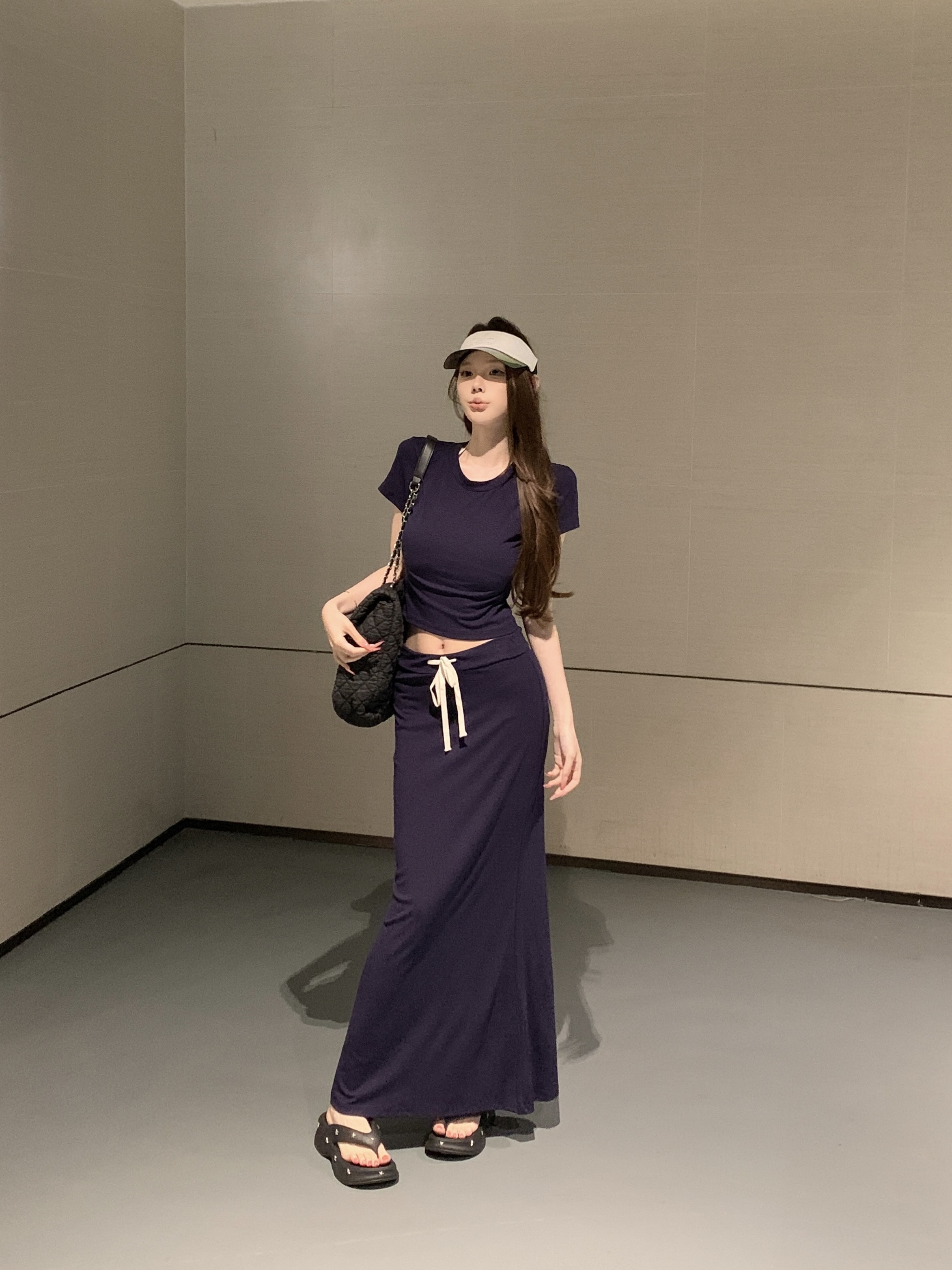 BY17247# 不减价轻氧元系上衣半裙套装高腰气质夏季复古设计感半身裙