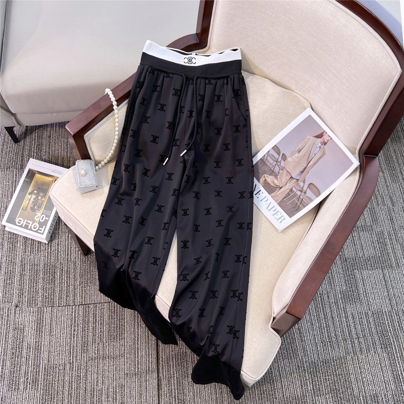 BY18760# 醋酸直筒裤女夏新款植绒裤子高腰显瘦长裤ins潮休闲垂感气质女裤 服裝批發女裝批發服飾貨源