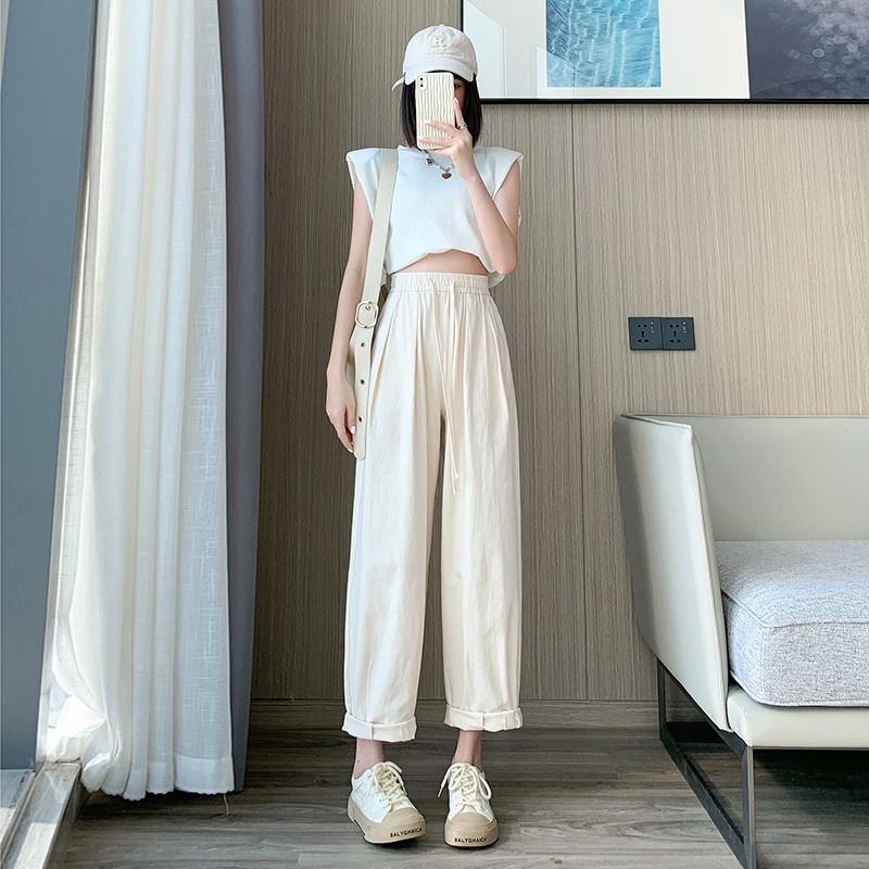 BY18761# 卡其色工装裤女秋夏高腰显瘦纯棉日系宽松萝卜裤休闲直筒裤阔腿裤 服裝批發女裝批發服飾貨源