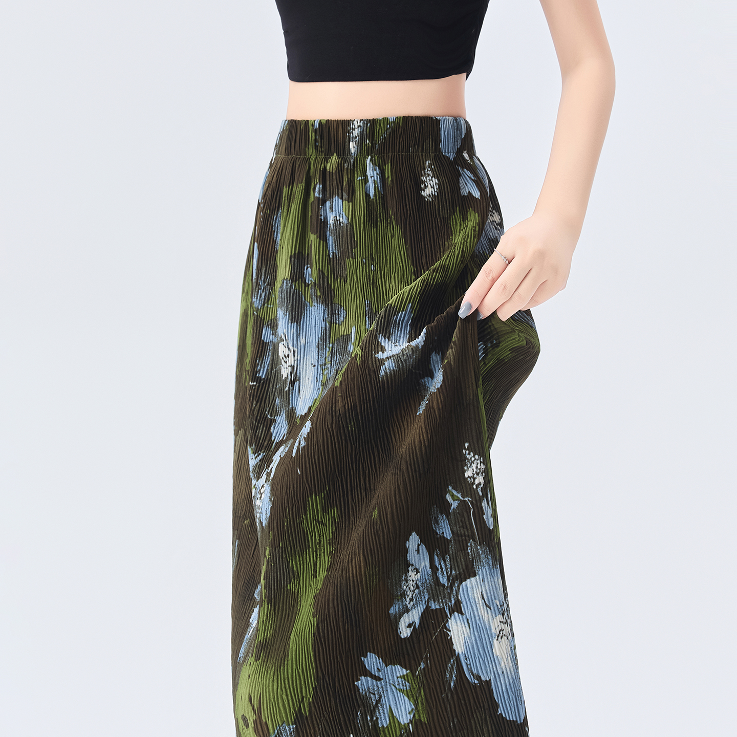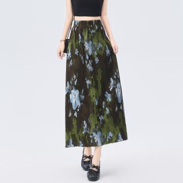 BY18764# 复古风晕染直筒半身裙女夏季新款松紧腰休闲百搭长裙子女 服裝批發女裝批發服飾貨源
