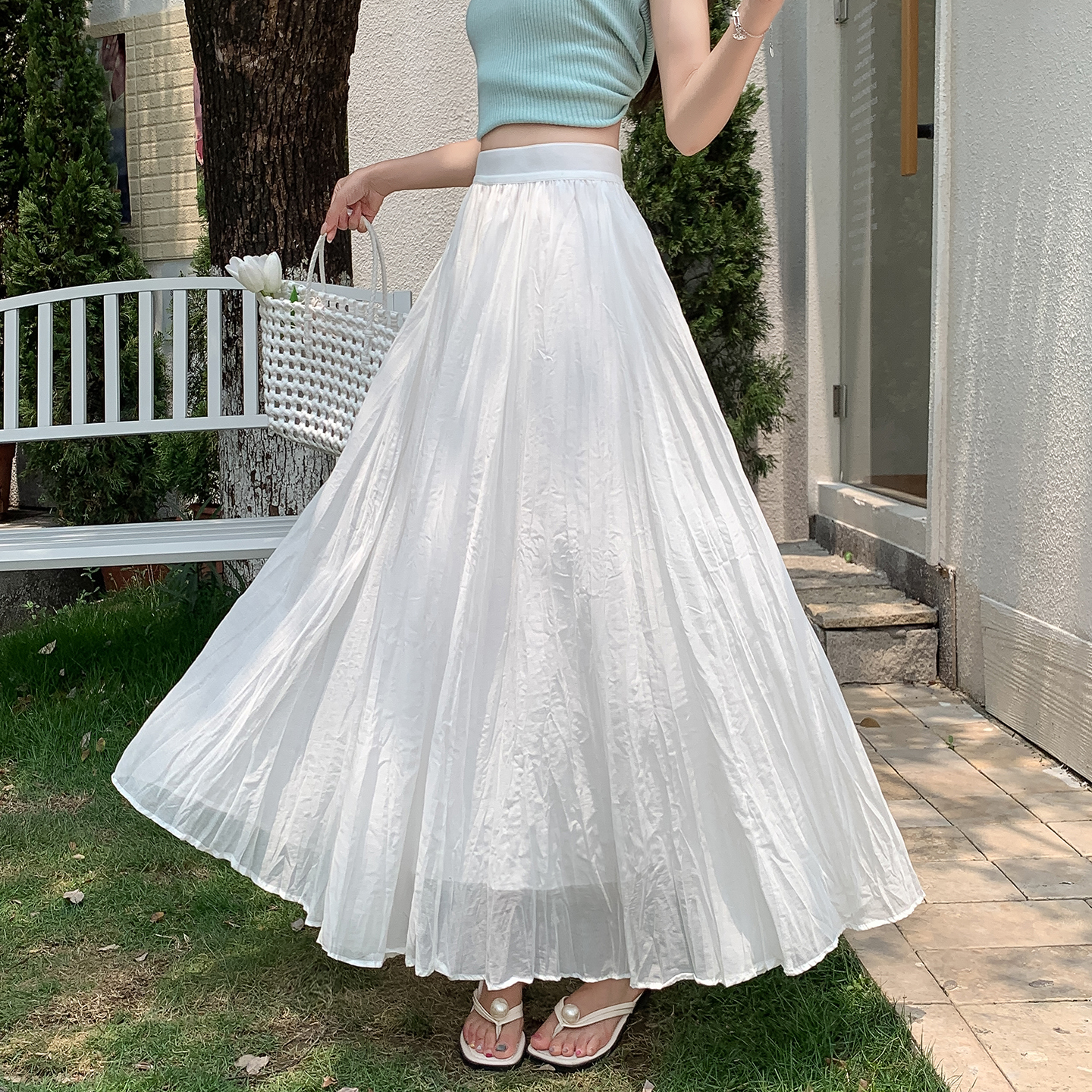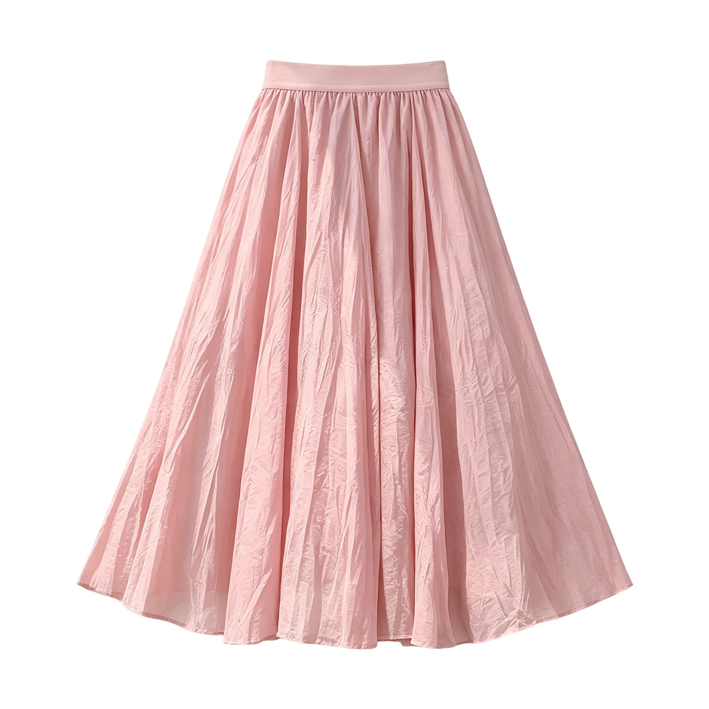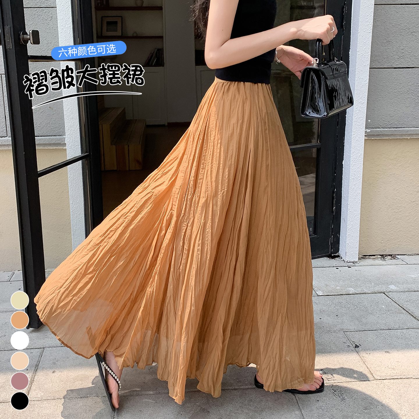 BY18765# 高腰a字半身长裙女夏新款气质显瘦大摆飘逸伞裙褶皱遮胯半裙 服裝批發女裝批發服飾貨源