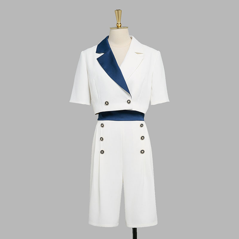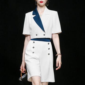 BY18787# 韩版撞色西装套装女短袖短款上衣高腰阔腿短裤干练御姐两件套 服裝批發女裝批發服飾貨源