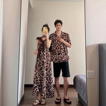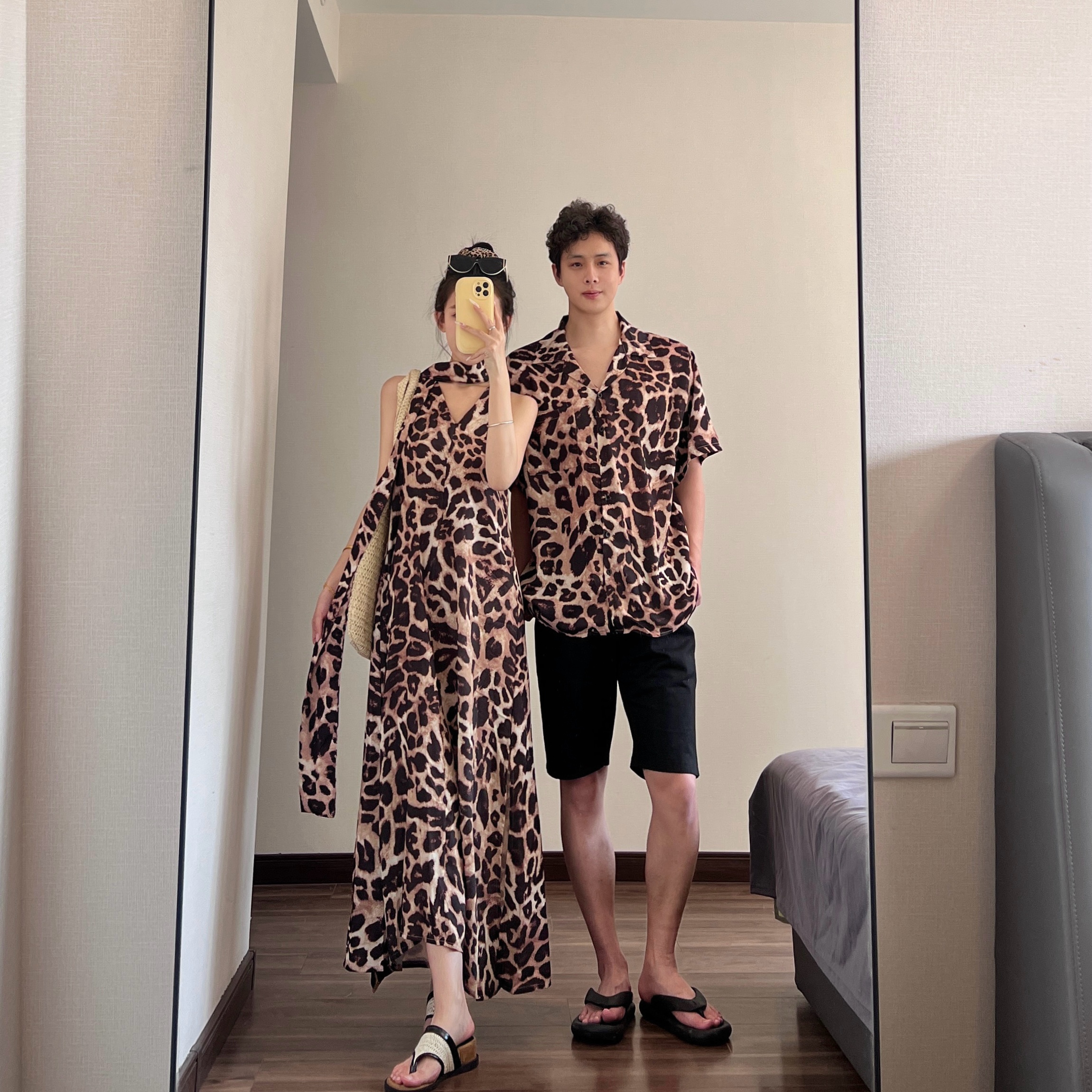 BY19041# 情侣装夏季豹纹吊带裙海边度假风沙滩裙一裙一衣 服裝批發女裝批發服飾貨源