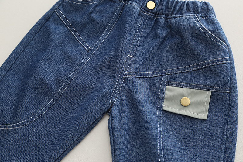 LN14480# 秋季男童潮流韩版中小童宝宝儿童长袖套装牛仔翻领两件套新款批发