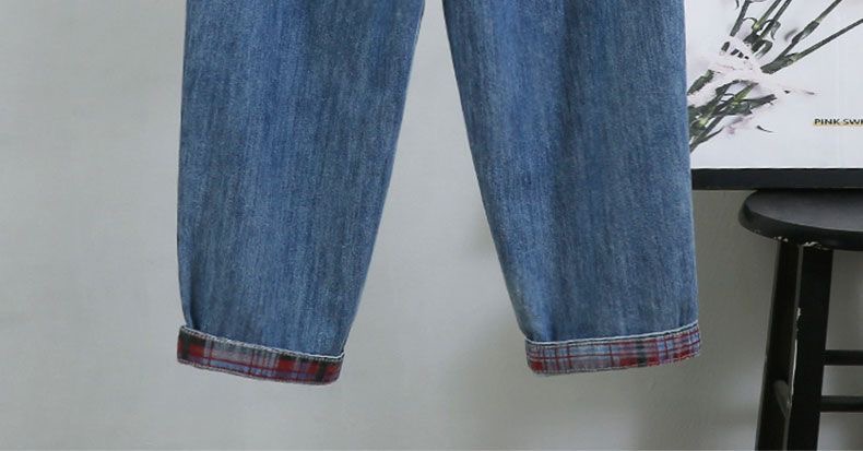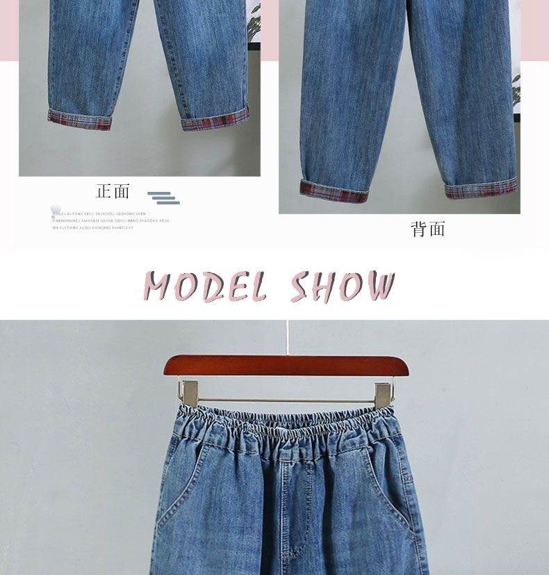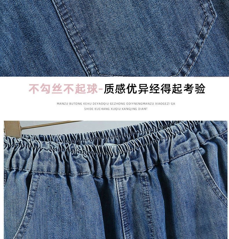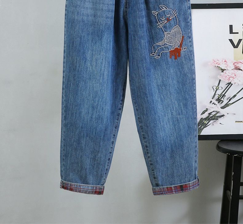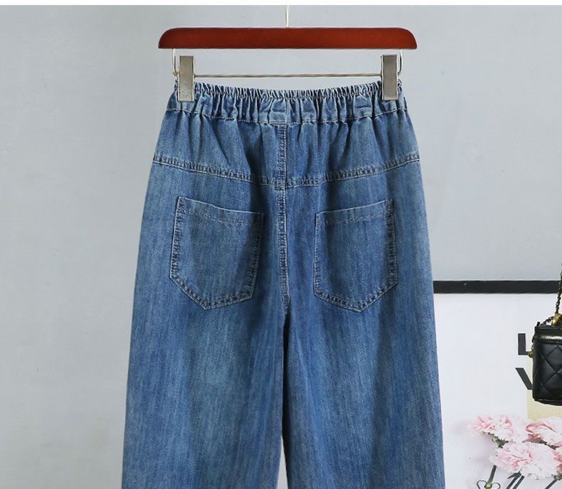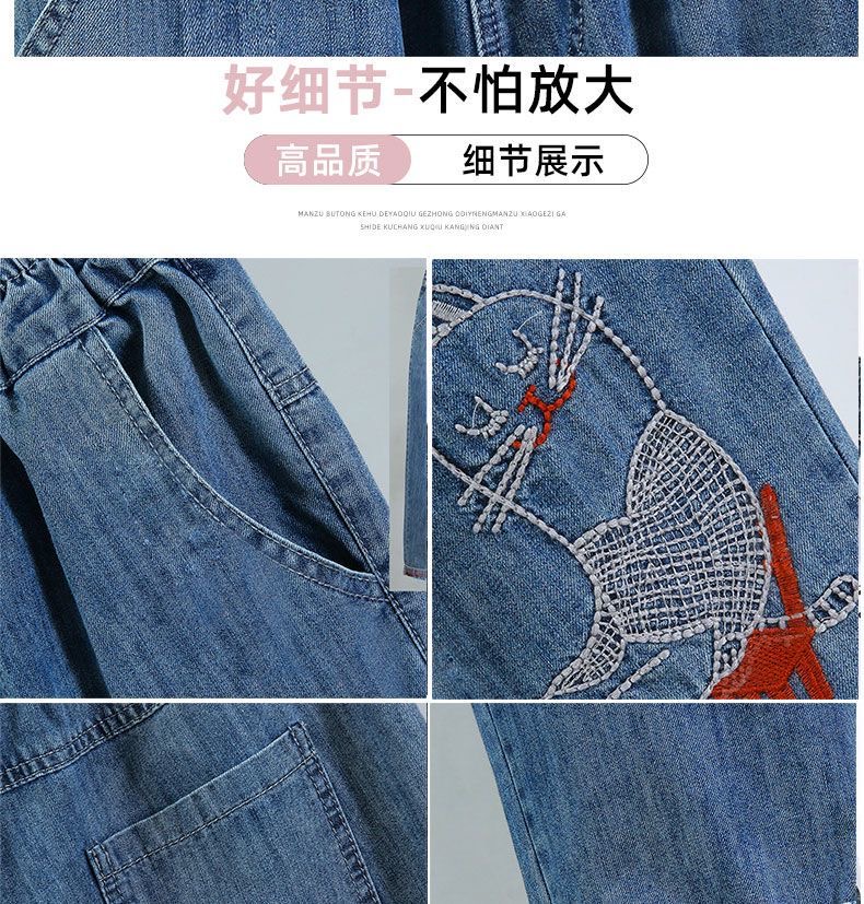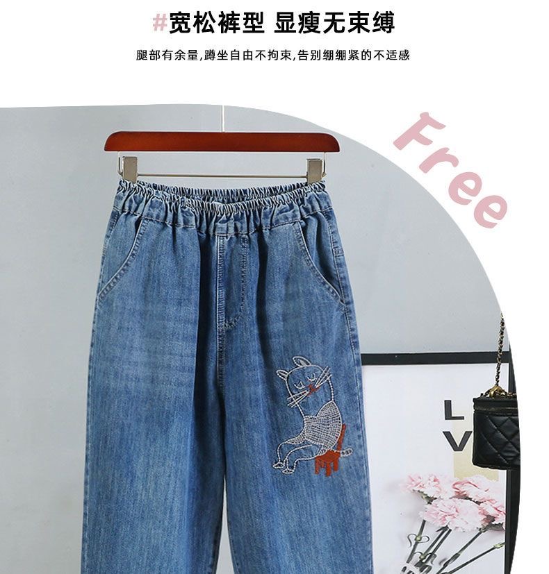 YF2364# 宽松牛仔九分裤女2025新款春夏季松紧腰高腰绣花贴布爆款哈伦裤子